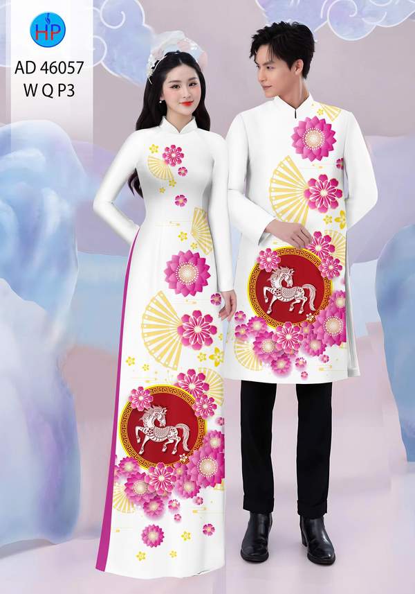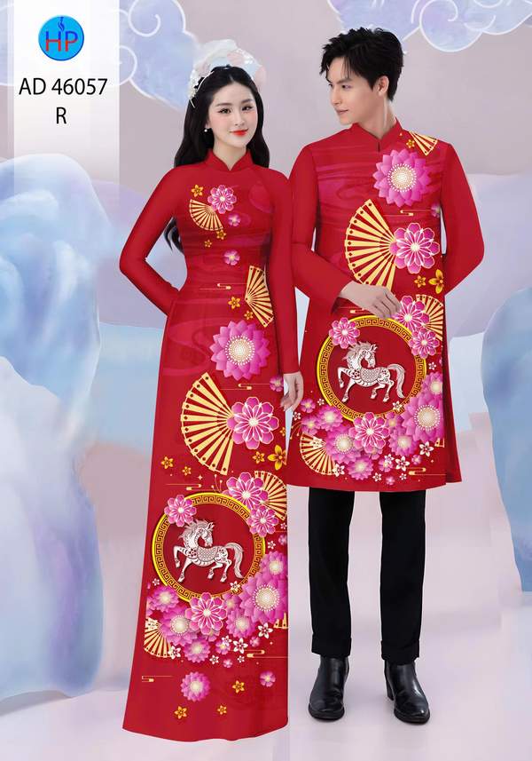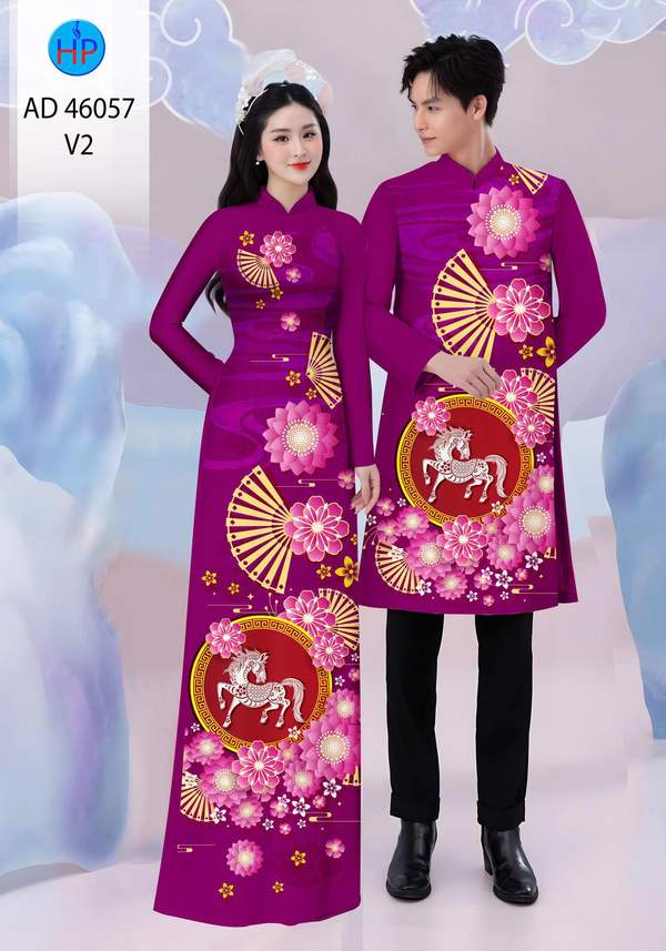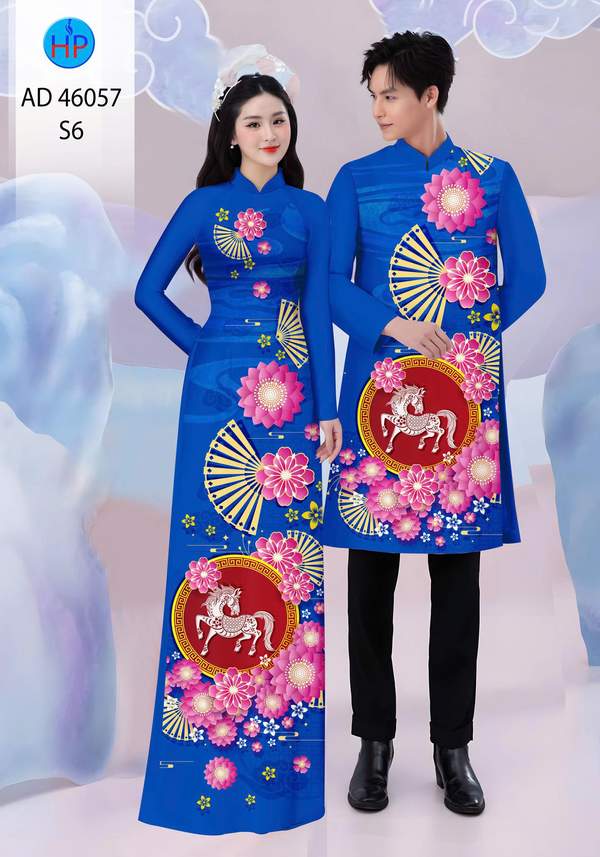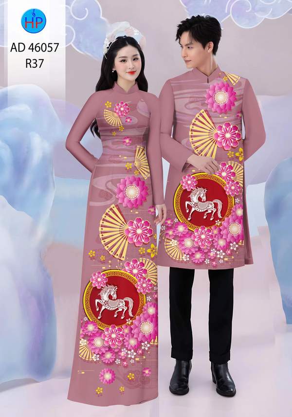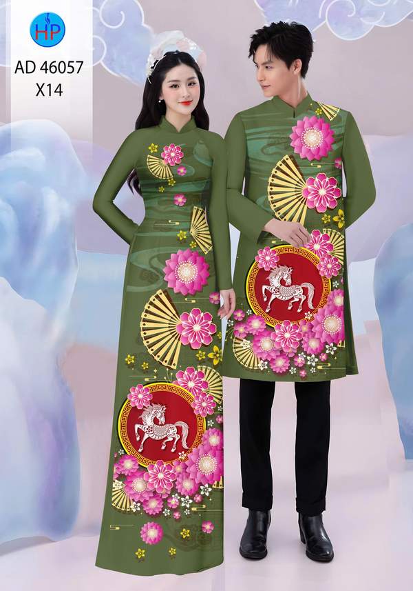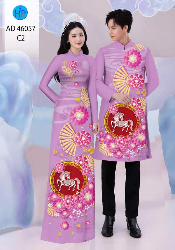 Vải Áo Dài Cặp Đôi Đón Tết nhiều kiểu mới năm nay AD 46057 duyên dáng