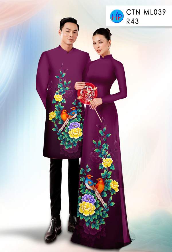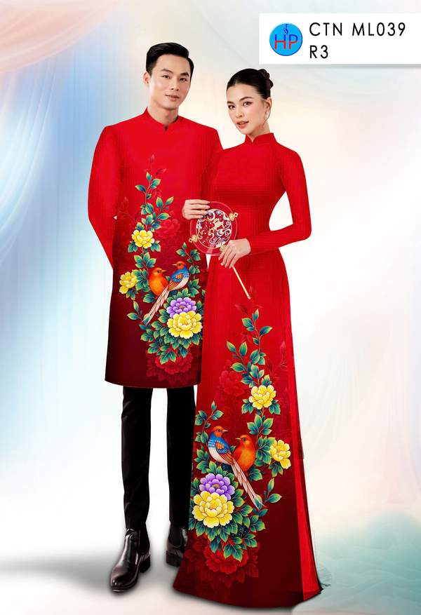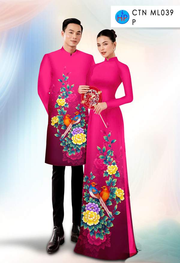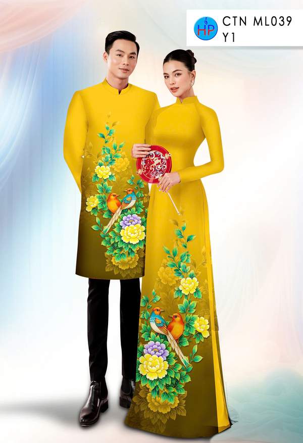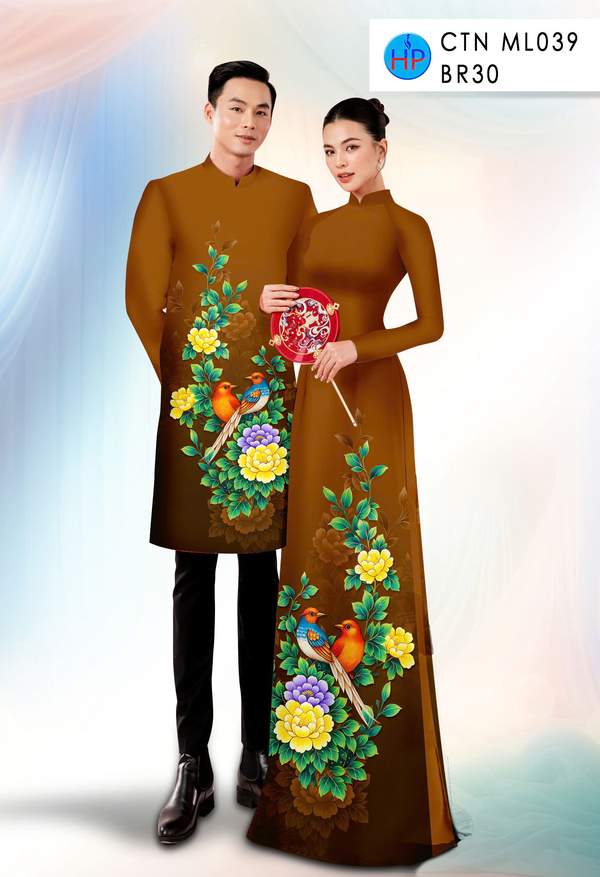 Vải Áo Dài Cặp Đôi Tết vừa thiết kế vừa ra AD CTNML039 truyền thống