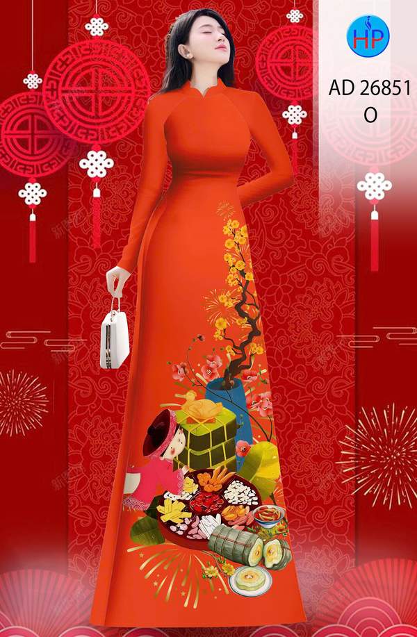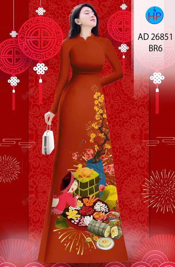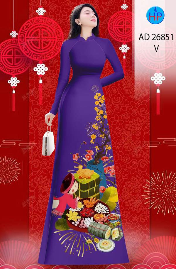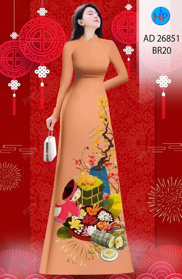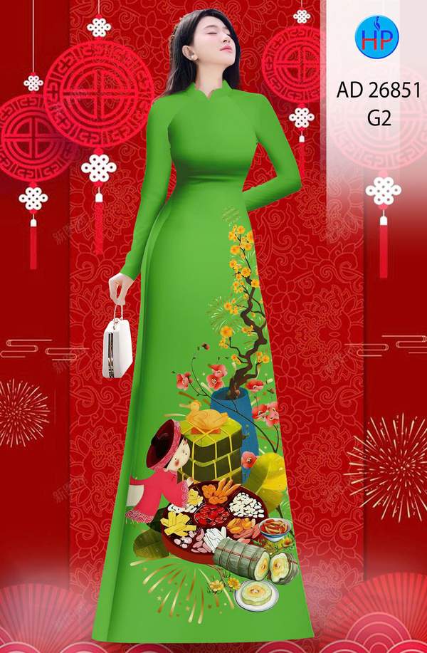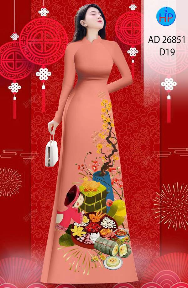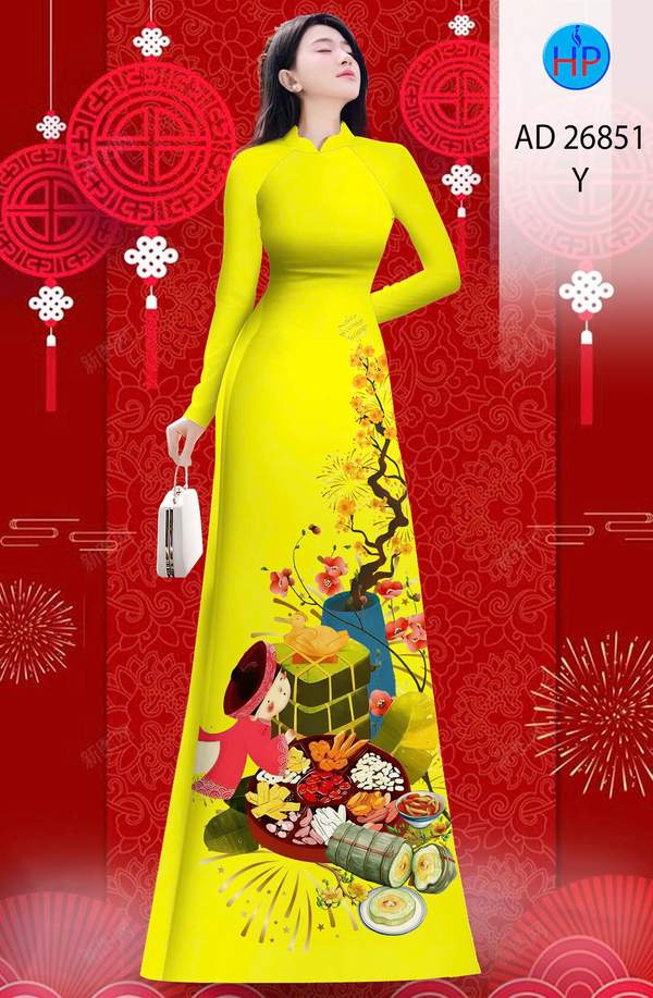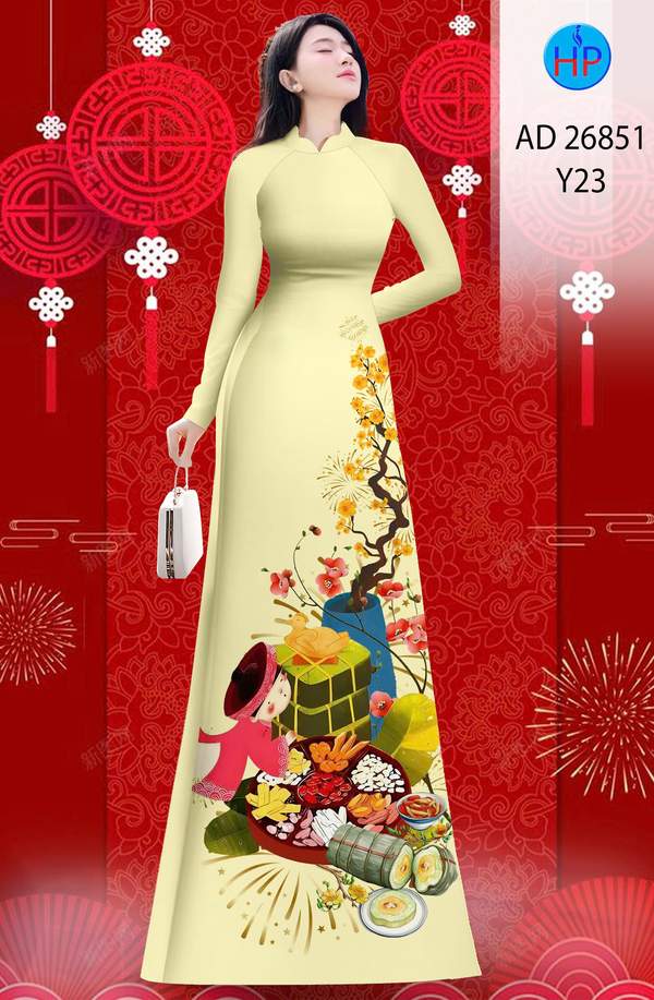 Vải Áo Dài Đón Tết thiết kế mới hiện nay AD 26851 duyên dáng