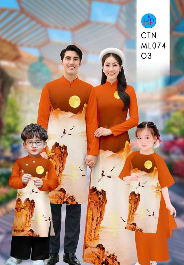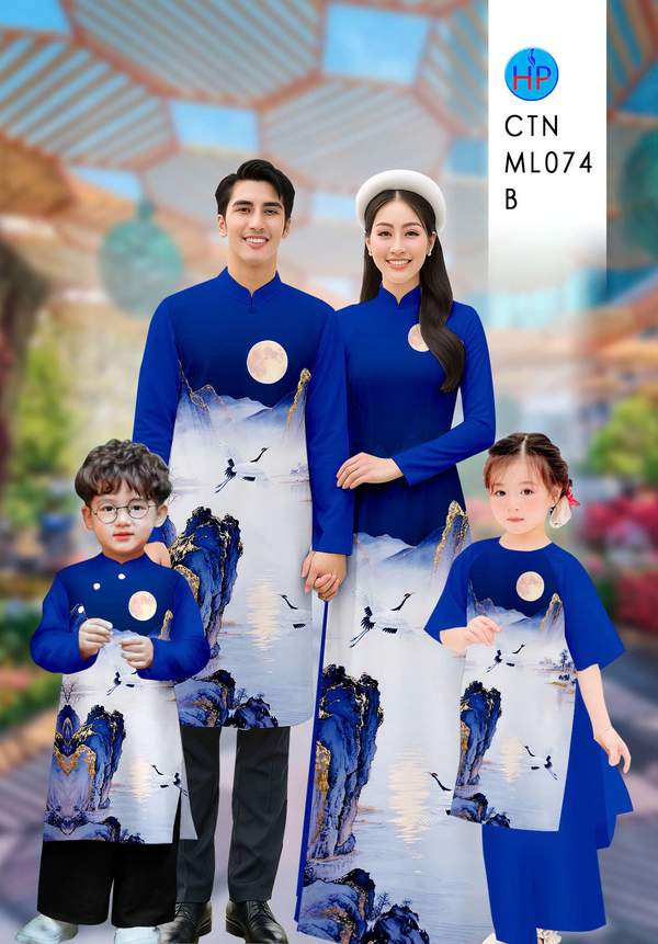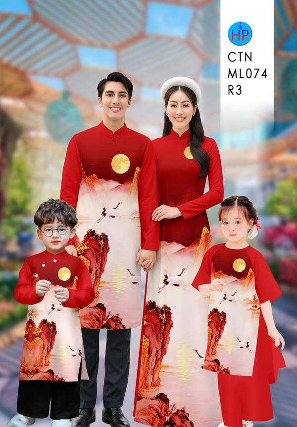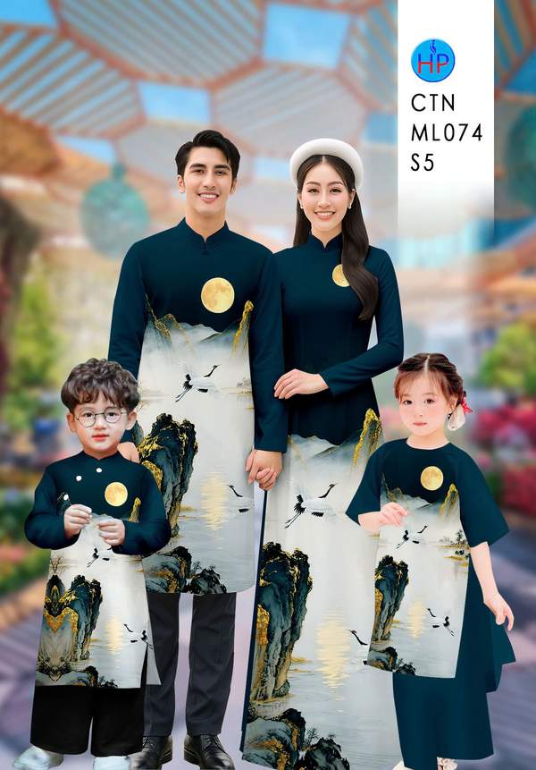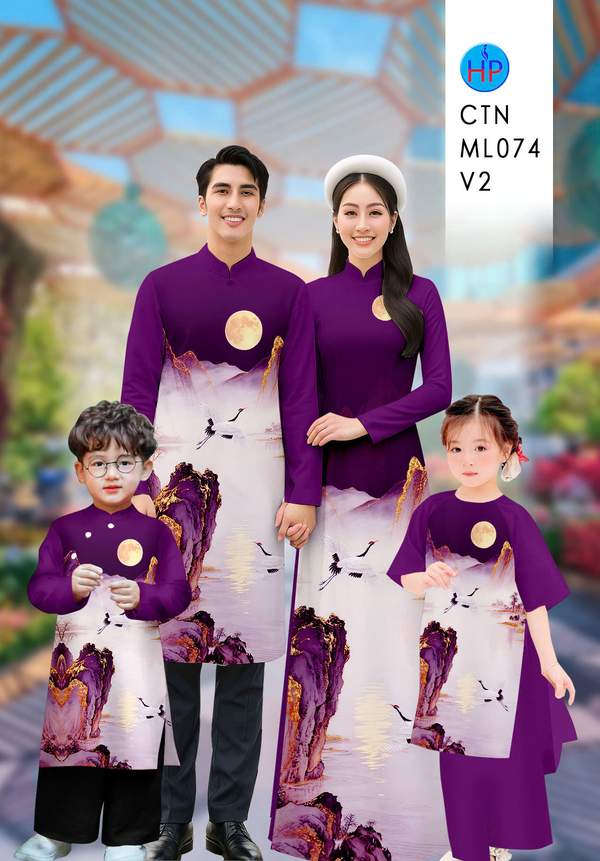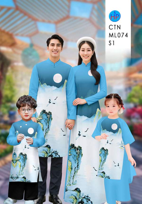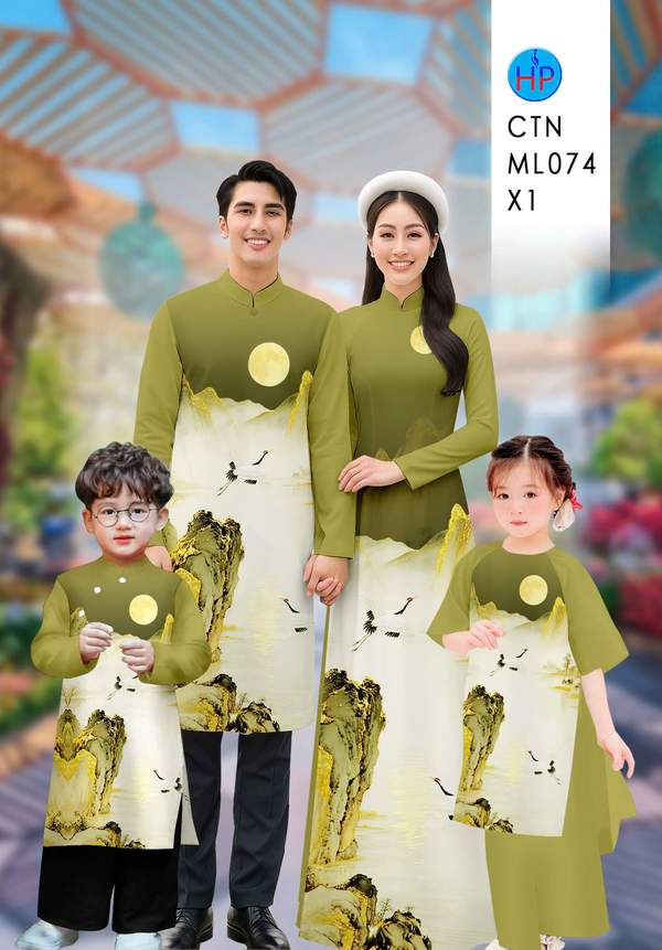Vải Áo Dài Gia Đình Phong Cảnh đẹp tháng này AD CTNML074 cổ truyền Việt Nam