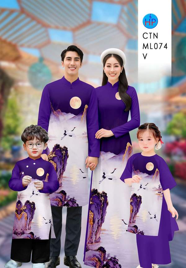 Vải Áo Dài Gia Đình Phong Cảnh đa dạng mẫu mã tuần này AD CTNML074 cổ truyền Việt Nam