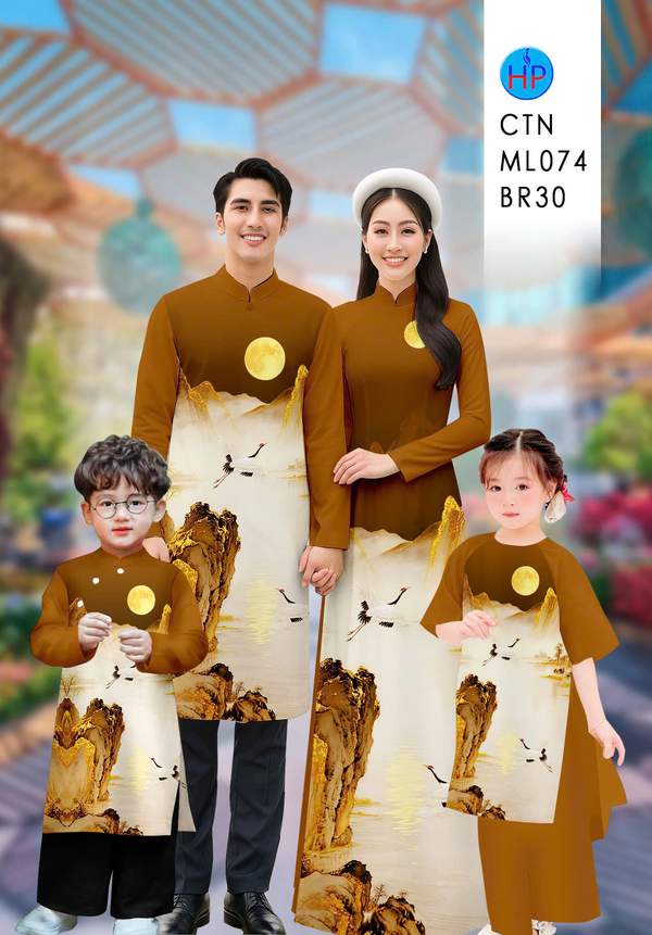 Vải Áo Dài Gia Đình Phong Cảnh đẹp tháng này AD CTNML074 truyền thống