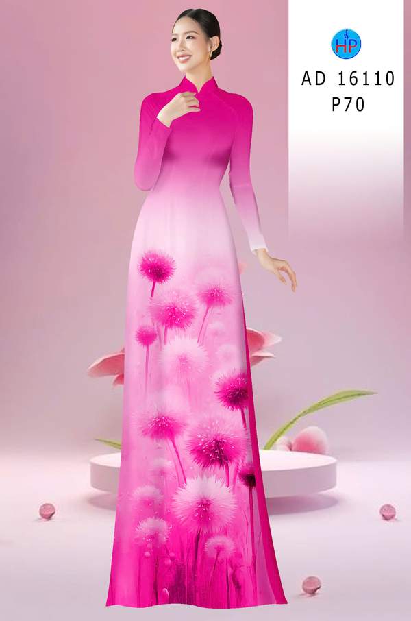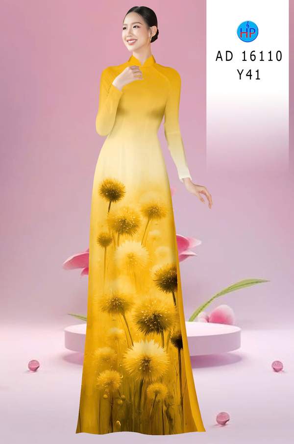 Vải Áo Dài Hoa Bồ Công Anh nhiều kiểu mới vừa ra AD 16110 cổ truyền