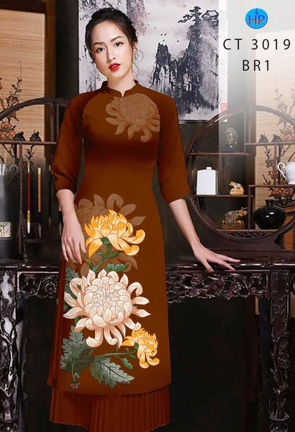 Vải Áo Dài Hoa Cẩm Chướng đa dạng mẫu mã tháng này AD CT3019 cổ truyền Việt Nam