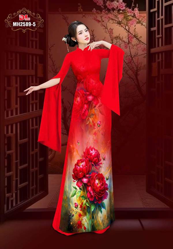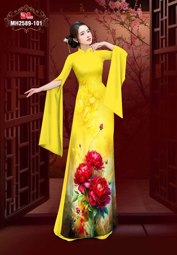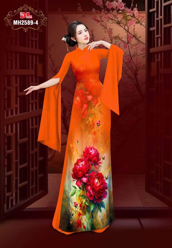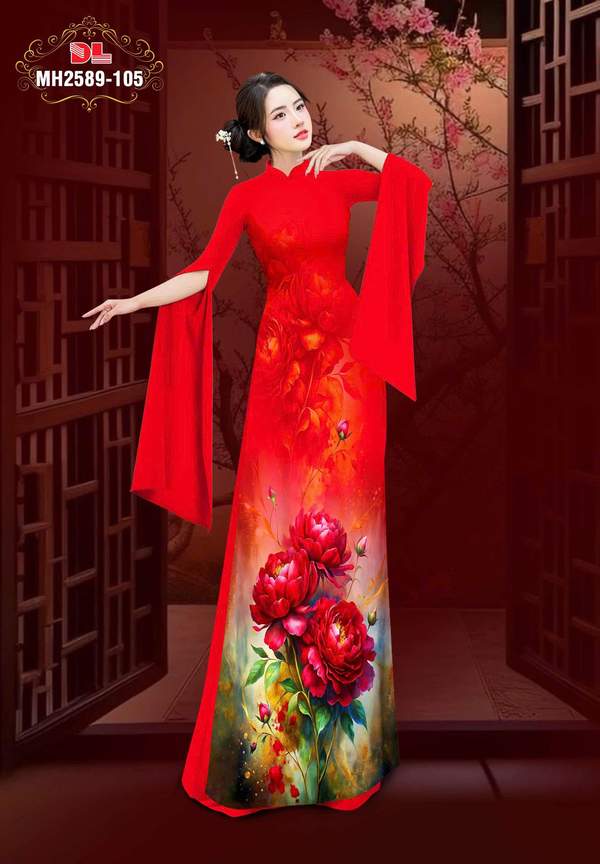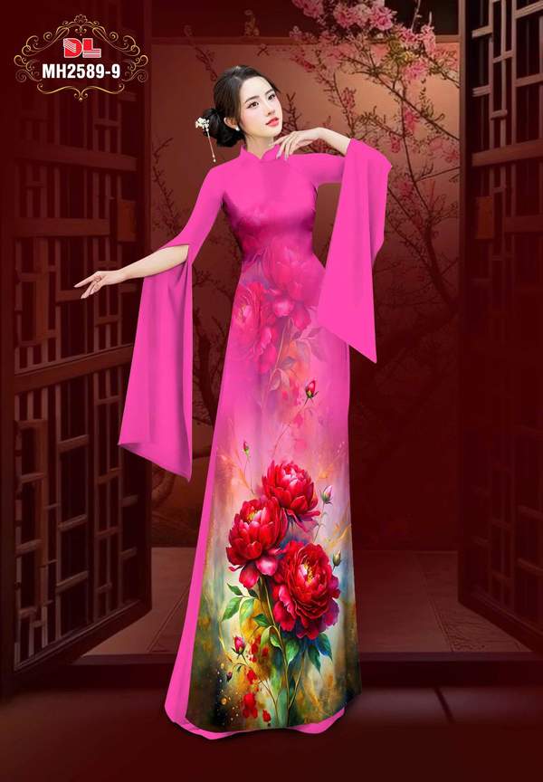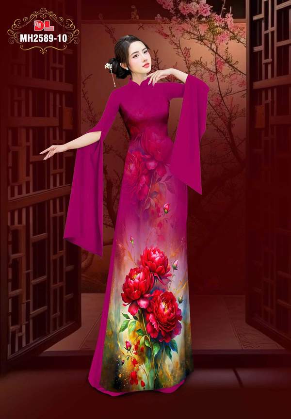 Vải Áo Dài Hoa Cẩm Chướng nhiều kiểu mới năm nay AD MH2589 tôn dáng ngọc