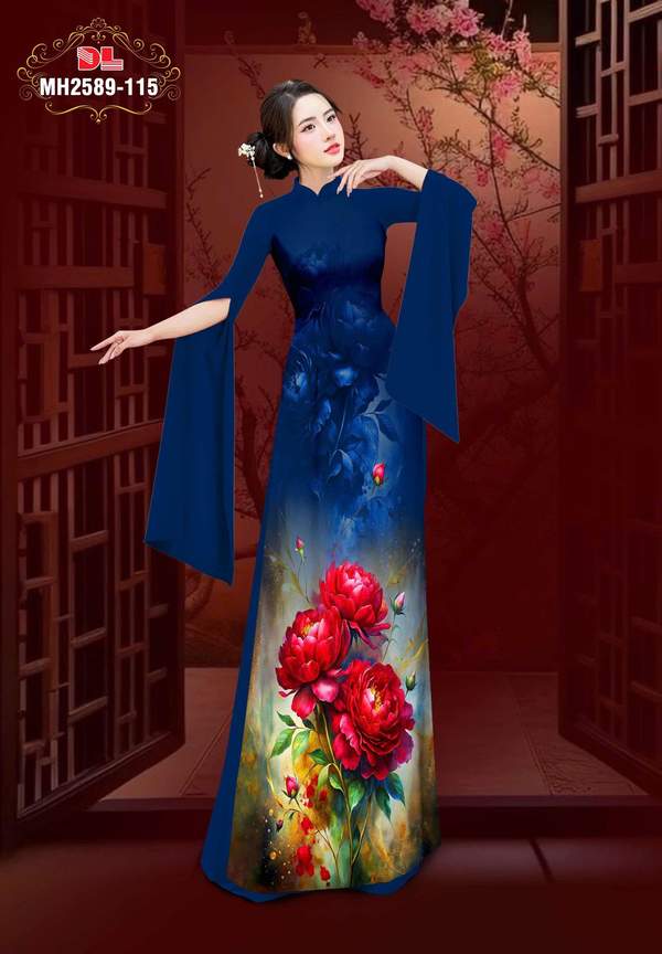 Vải Áo Dài Hoa Cẩm Chướng vừa thiết kế vừa ra AD MH2589 truyền thống