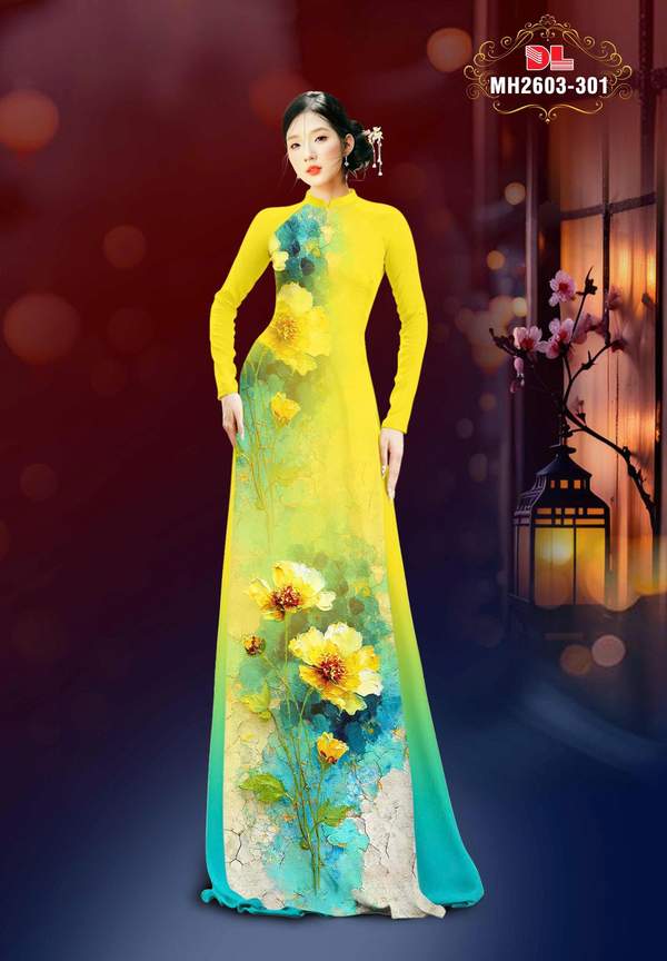 Vải Áo Dài Hoa Cúc đa dạng tháng này AD MH2603 cổ truyền Việt Nam