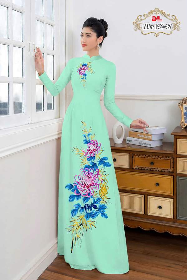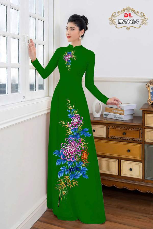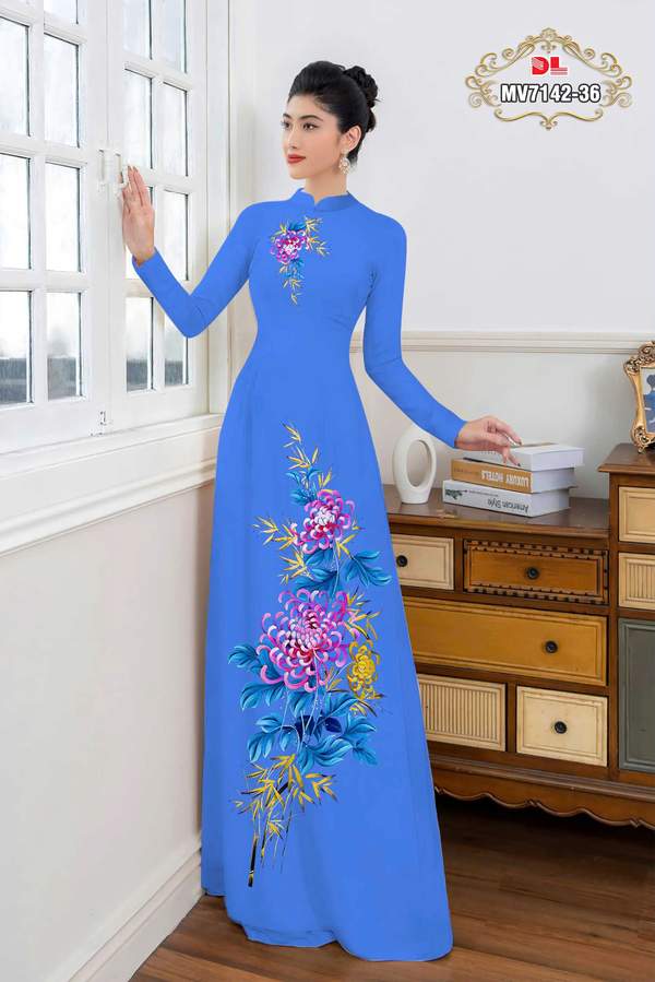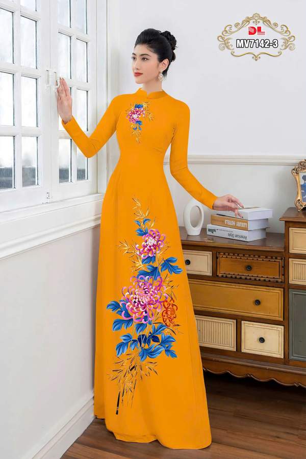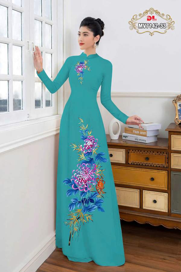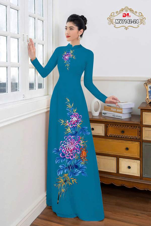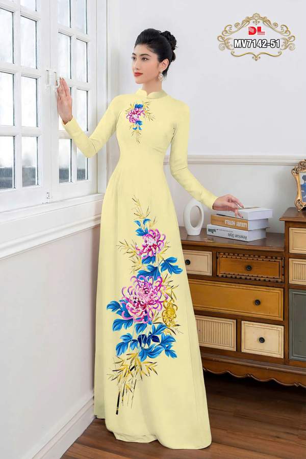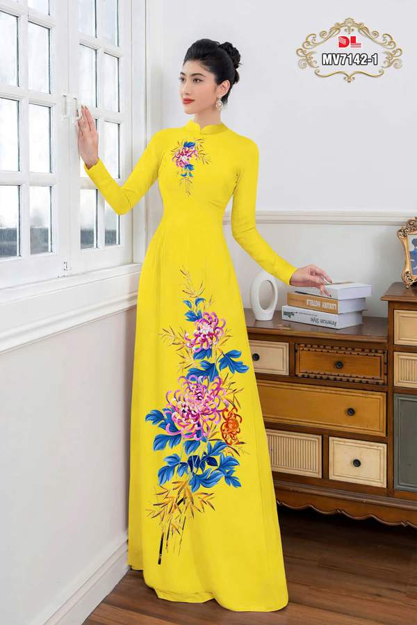 Vải Áo Dài Hoa Cúc nhiều kiểu mới tuần này AD MV7142 thiết kế mới