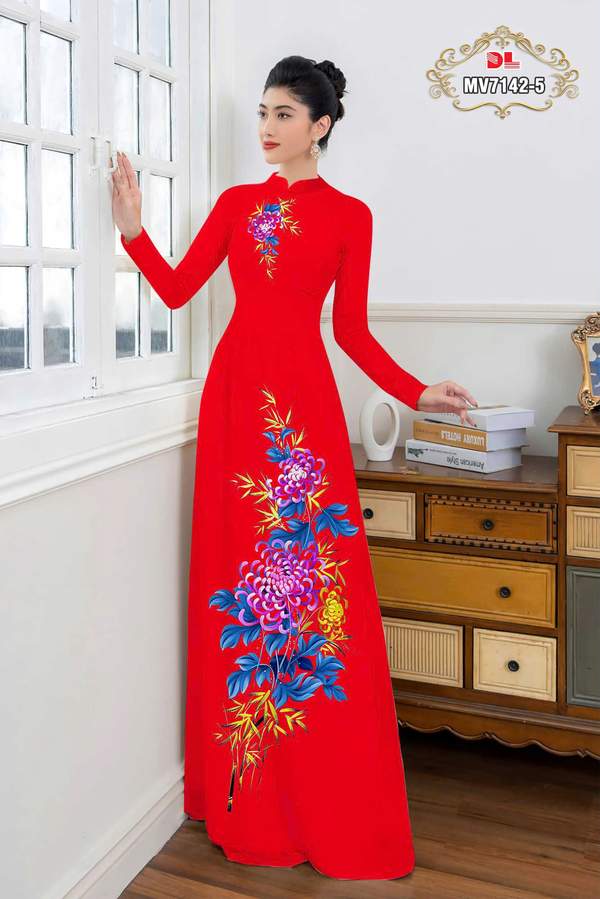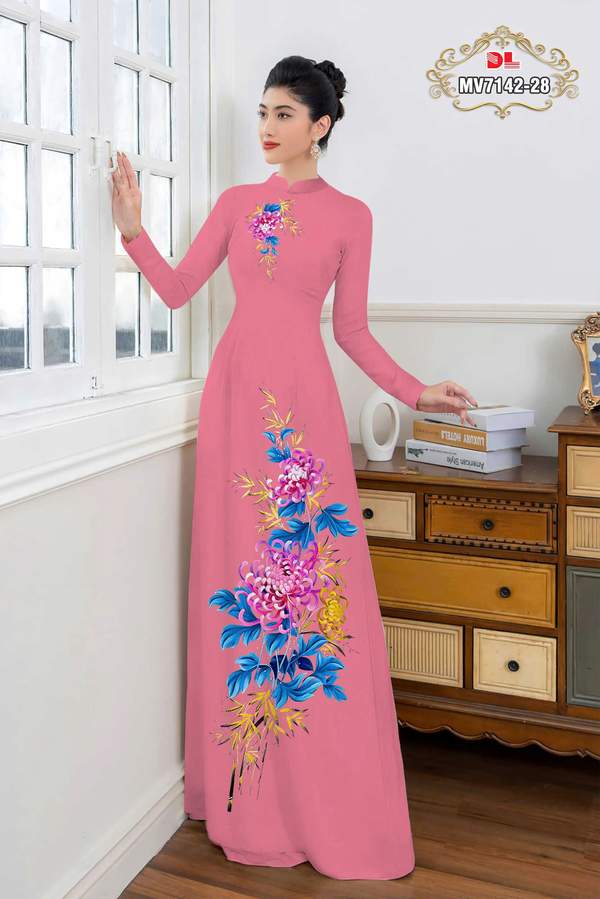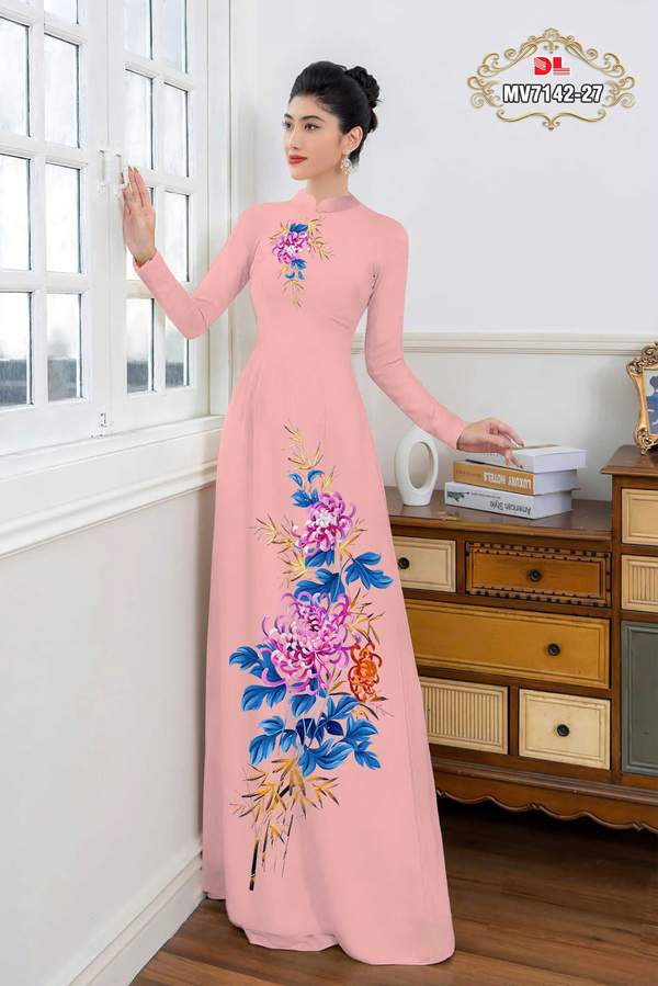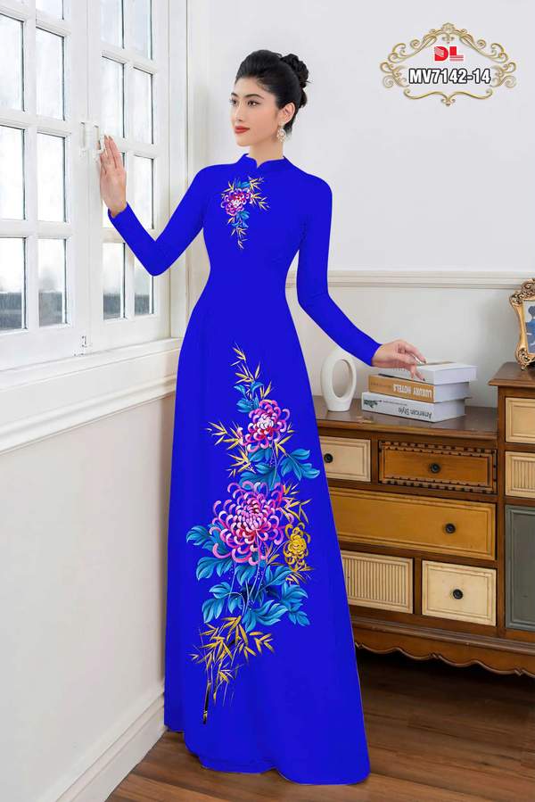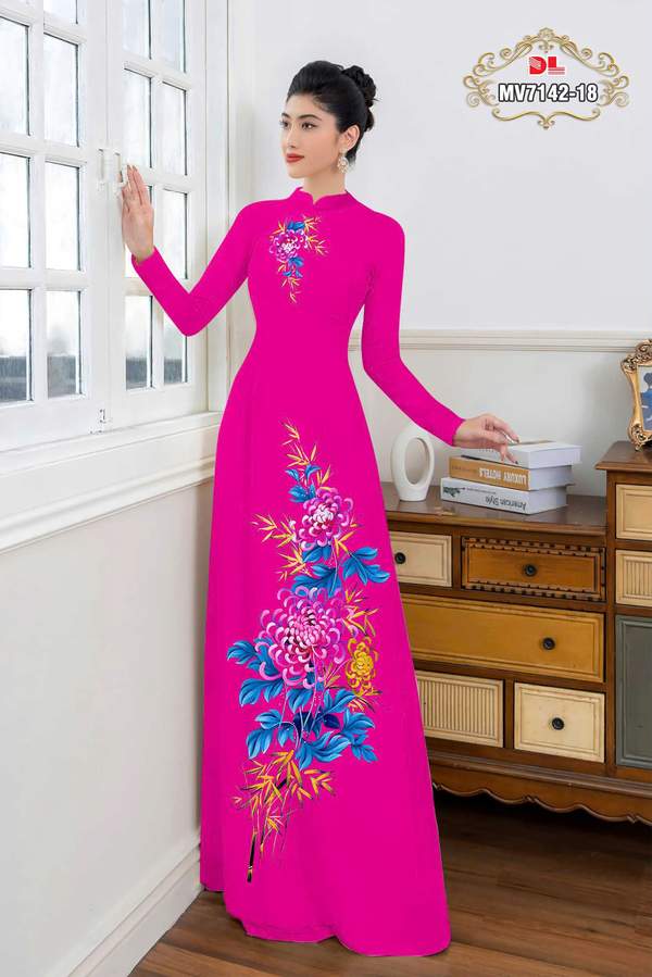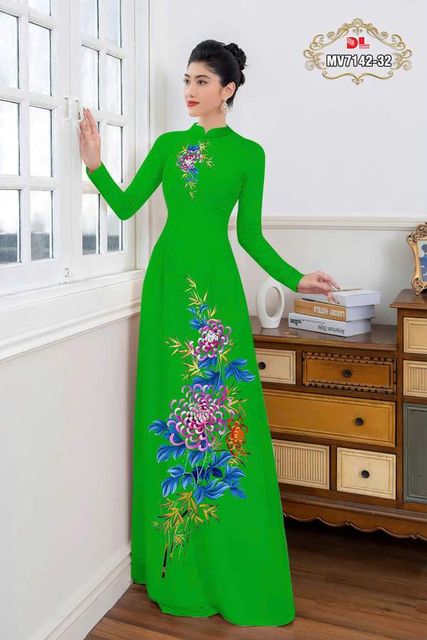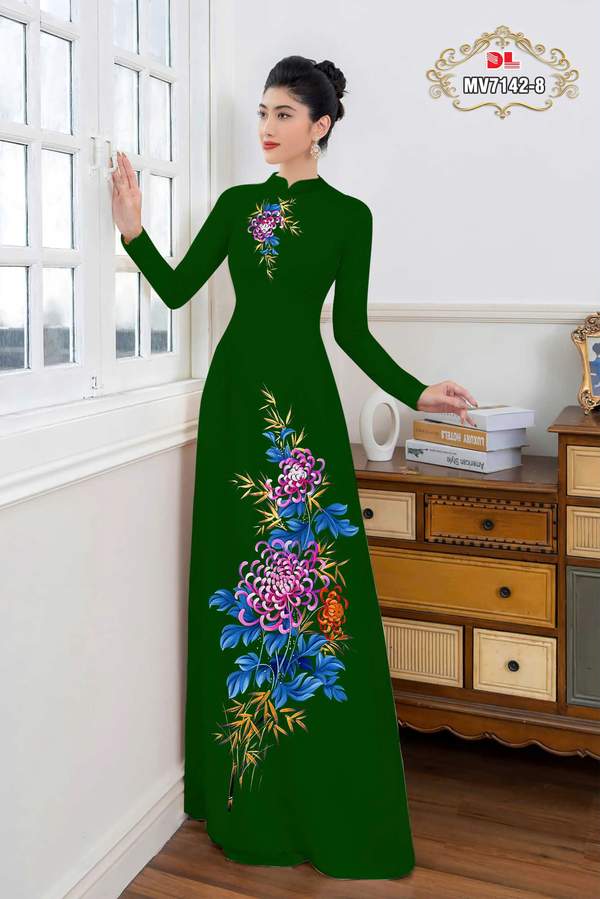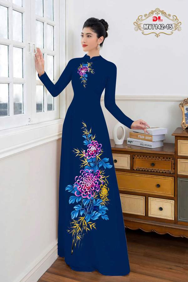 Vải Áo Dài Hoa Cúc nhiều kiểu mới tuần này AD MV7142 thiết kế mới