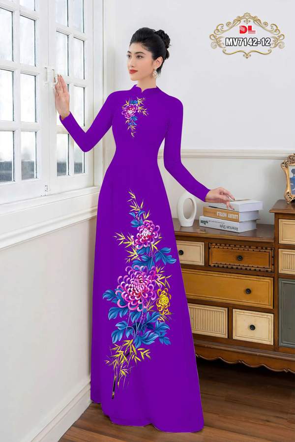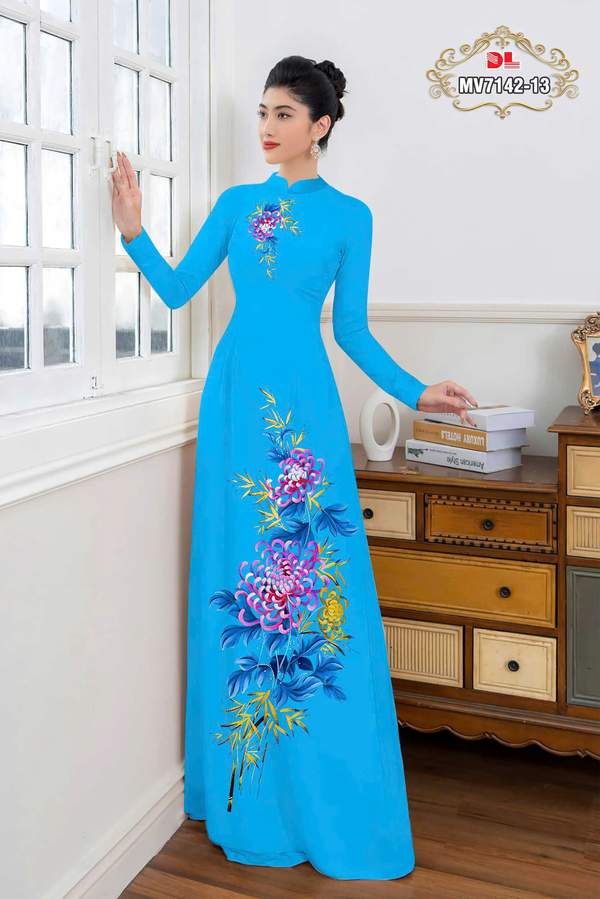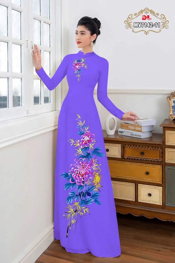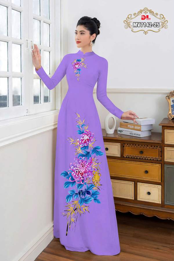 Vải Áo Dài Hoa Cúc nhiều kiểu mới tuần này AD MV7142 vừa thiết kế