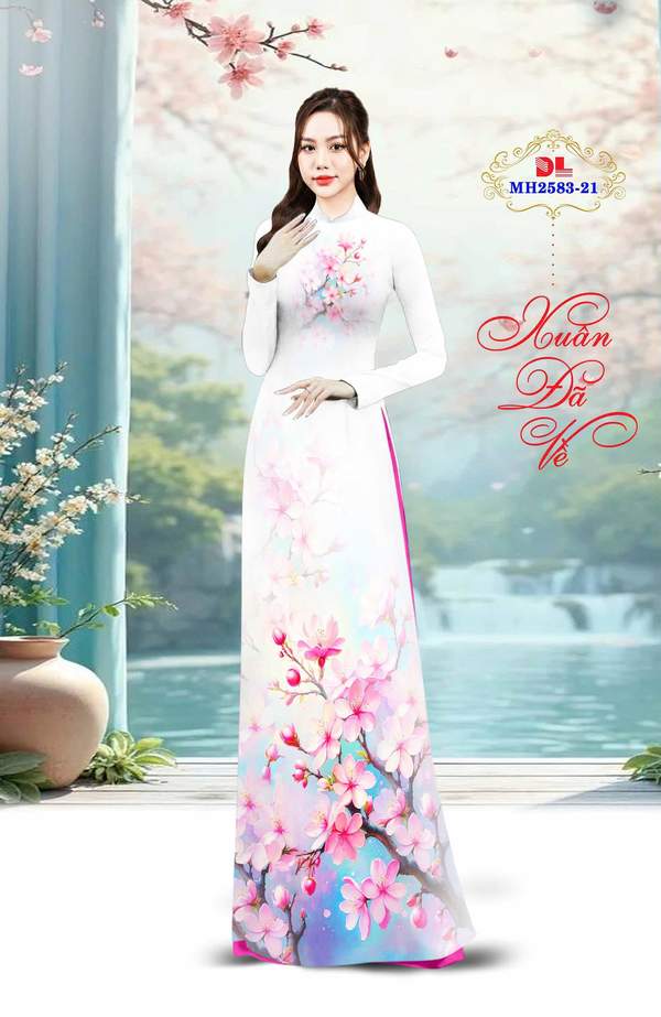 Vải Áo Dài Hoa Đào Đón Tết đẹp năm nay AD MH2583 thiết kế mới