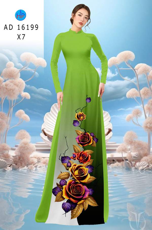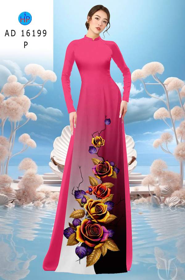 Vải Áo Dài Hoa Hồng nhiều kiểu mới vừa ra AD 16199 vừa thiết kế