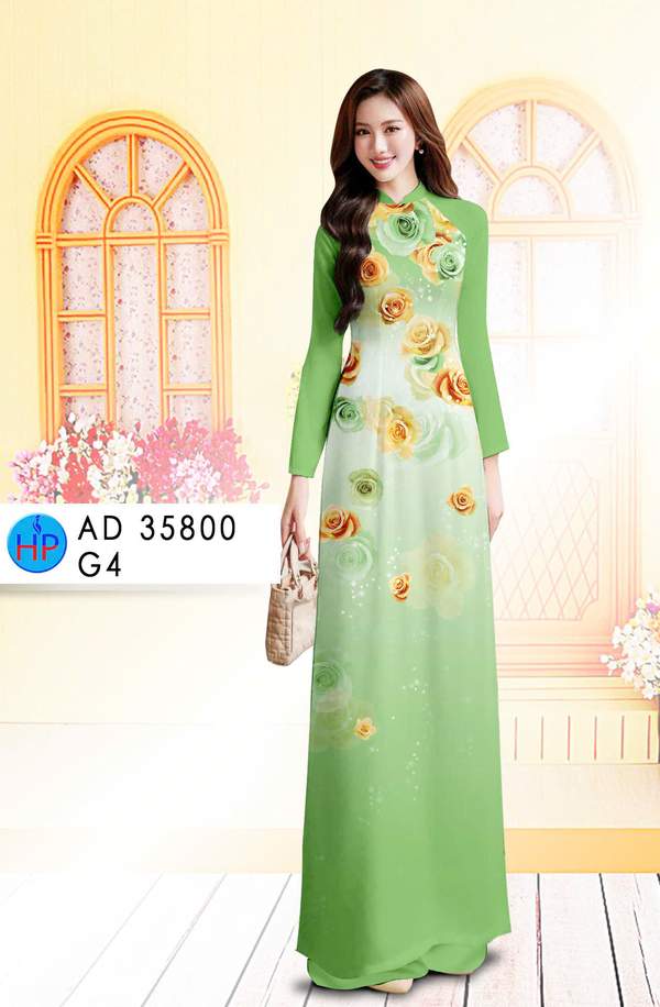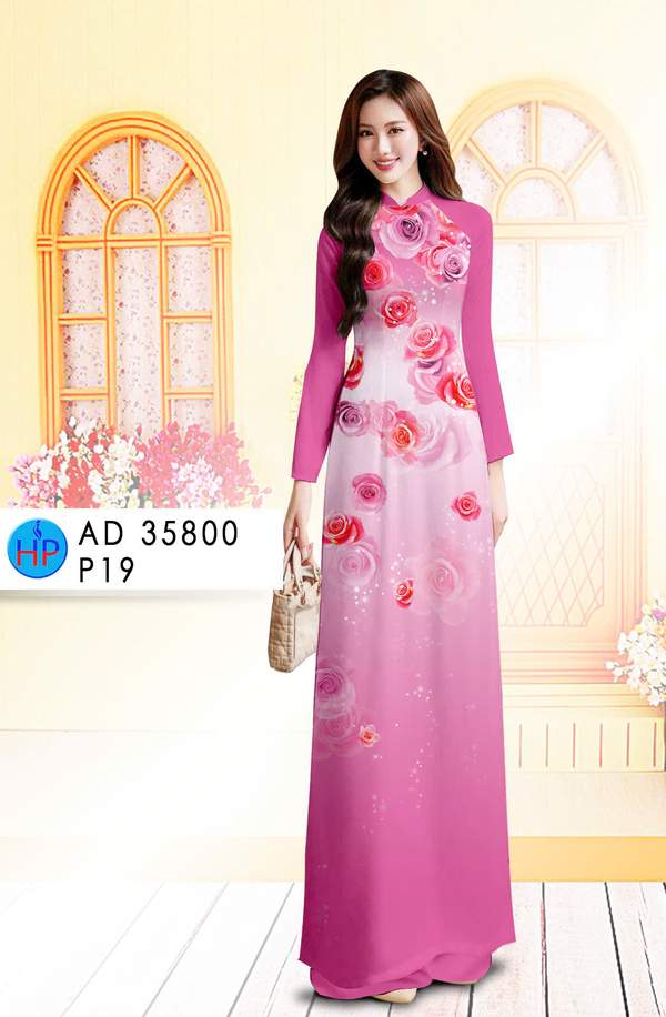 Vải Áo Dài Hoa Hồng nhẹ nhàng tuần này AD 35800 thiết kế mới