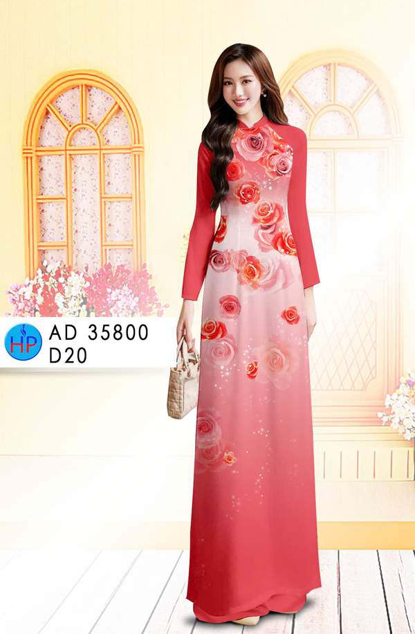 Vải Áo Dài Hoa Hồng đa dạng mẫu mã hiện nay AD 35800 thiết kế mới