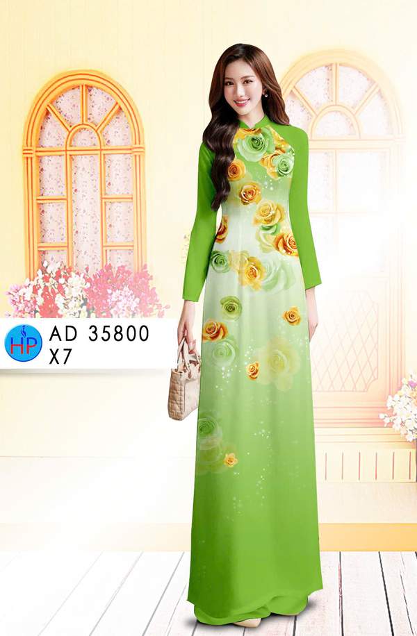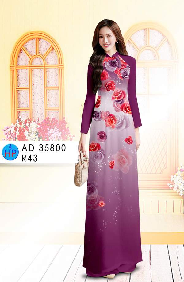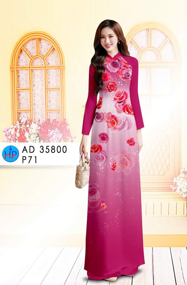 Vải Áo Dài Hoa Hồng nhẹ nhàng tuần này AD 35800 cổ truyền Việt Nam