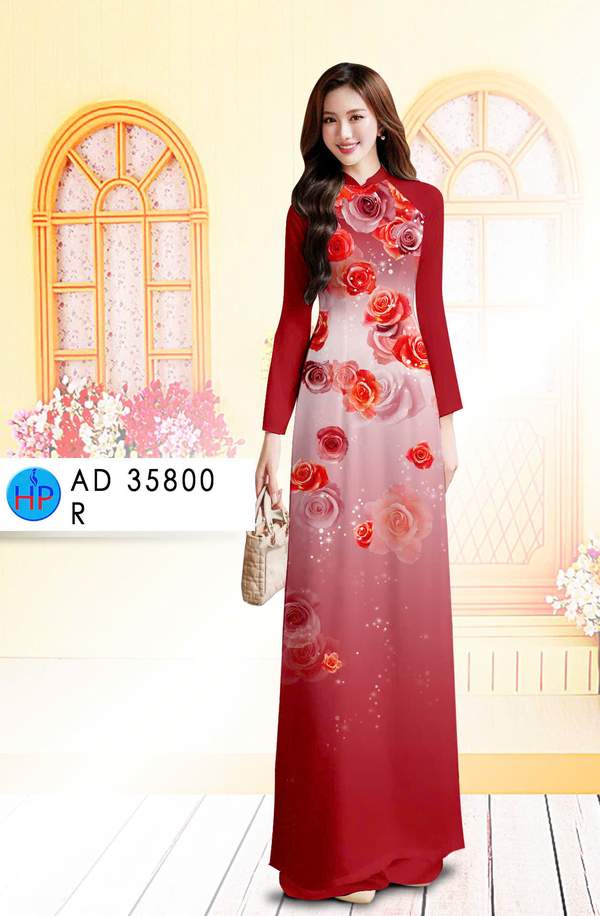 Vải Áo Dài Hoa Hồng đa dạng mẫu mã hiện nay AD 35800 truyền thống
