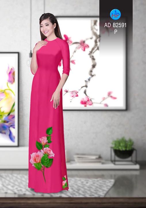 Vải áo dài Hoa hồng AD B2591 mẫu mới được thiết kế rất đẹp.
