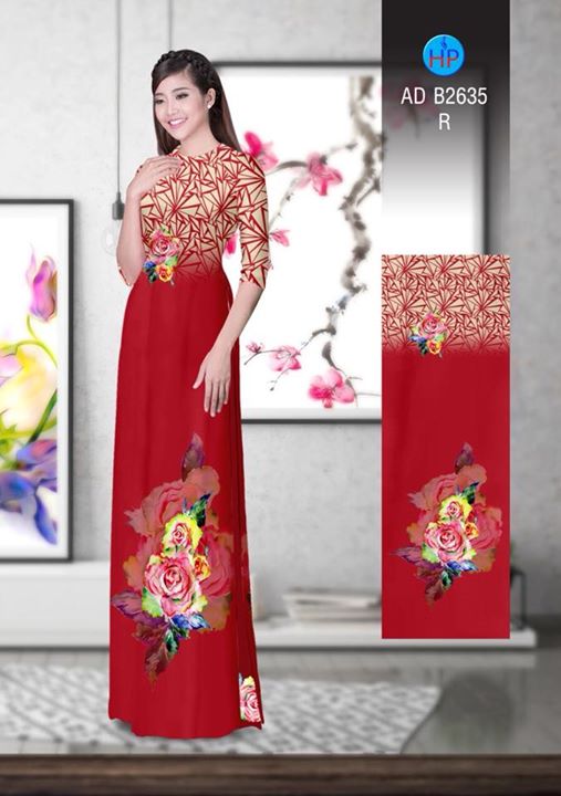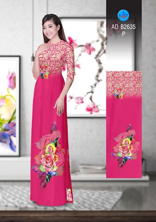 Vải áo dài Hoa hồng AD B2635 mẫu mới được thiết kế rất đẹp.