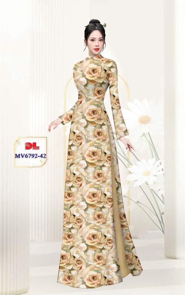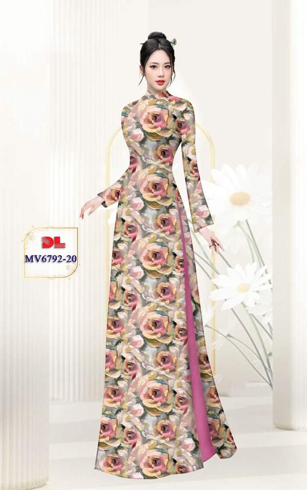 Vải Áo Dài Hoa Hồng mới ra hiện nay AD MV6792 thiết kế mới