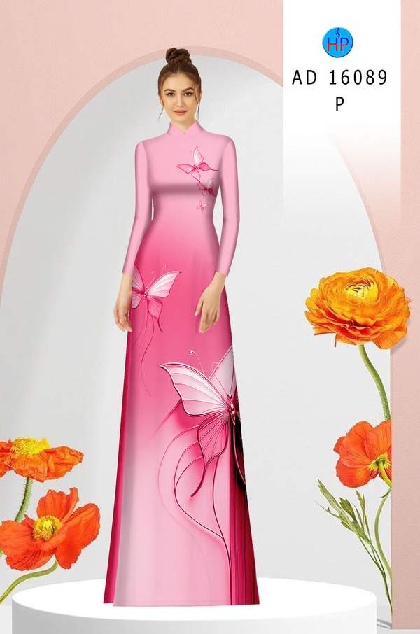 Vải Áo Dài Hoa In 3D mới ra vừa ra AD 16089 duyên dáng