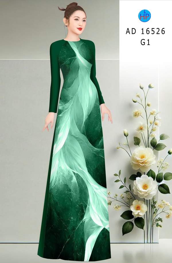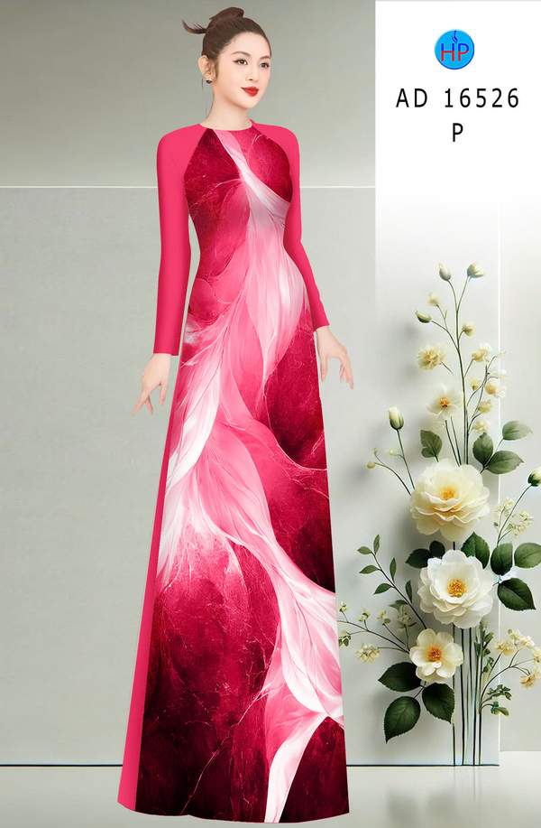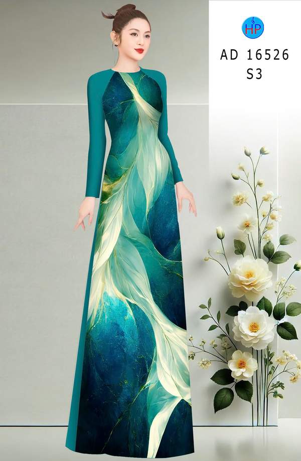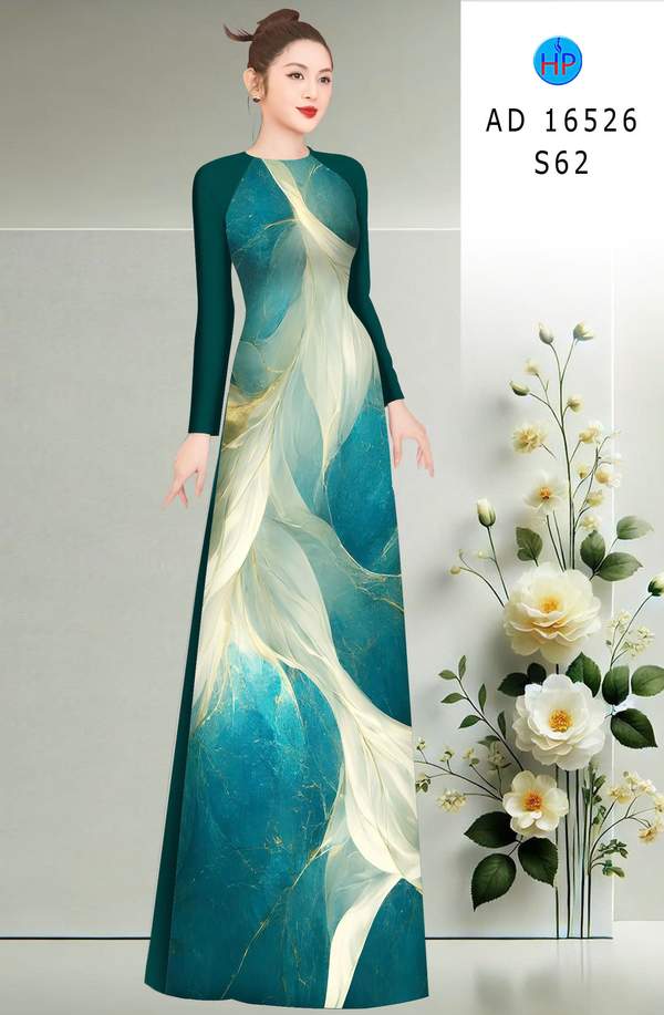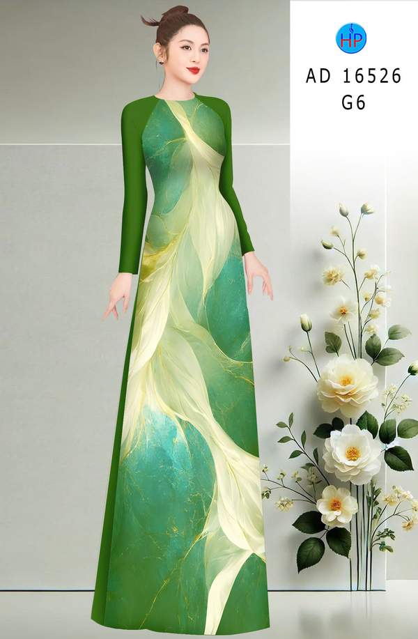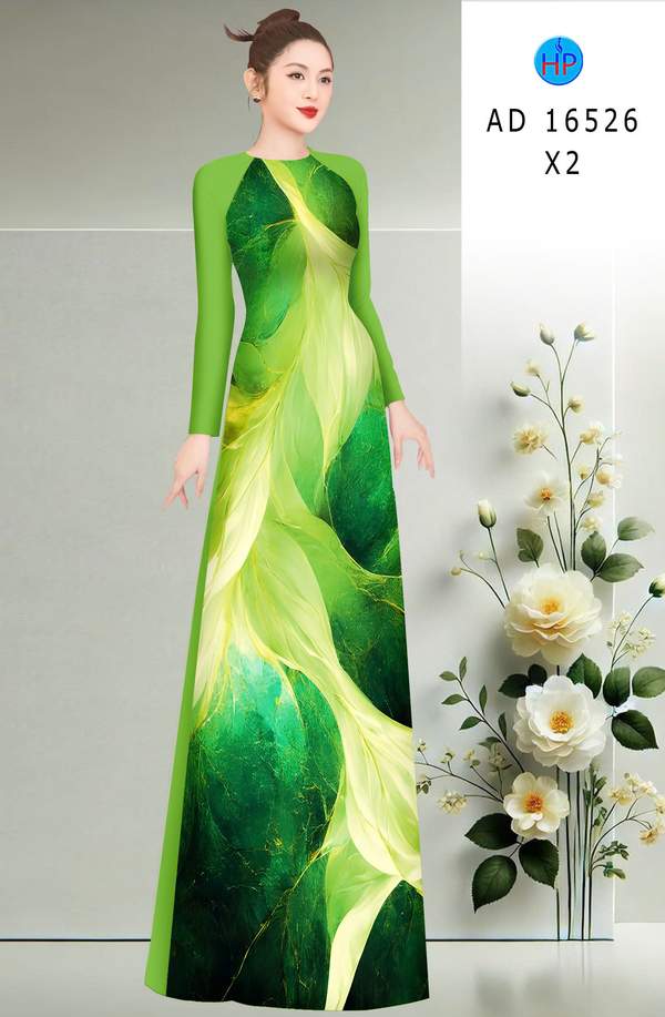 Vải Áo Dài Hoa In 3D thiết kế mới năm nay AD 16526 tôn dáng ngọc