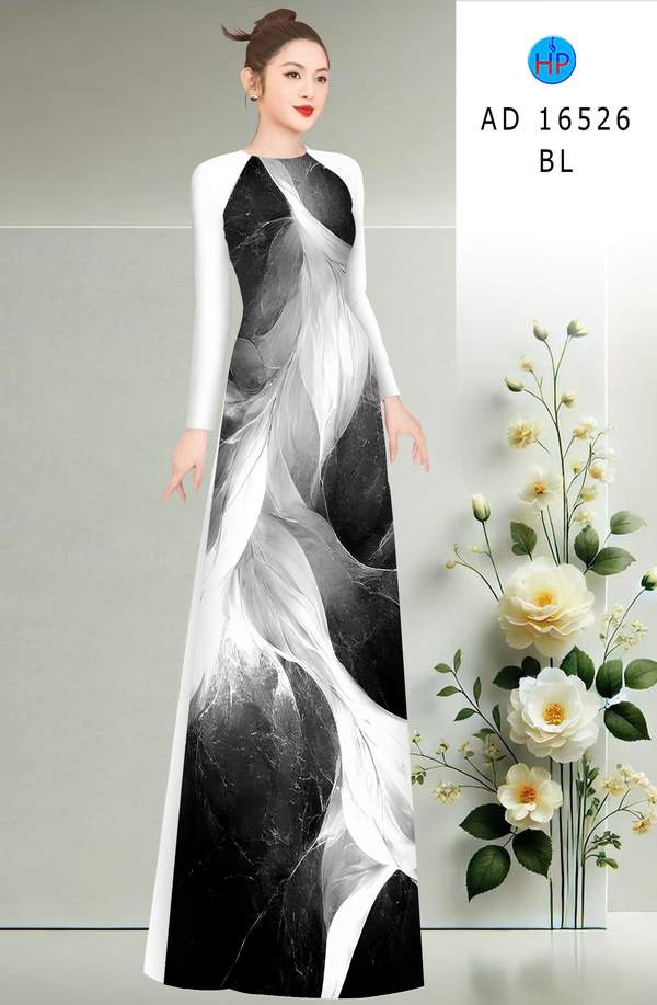 Vải Áo Dài Hoa In 3D ưa chuộng năm nay AD 16526 thiết kế mới