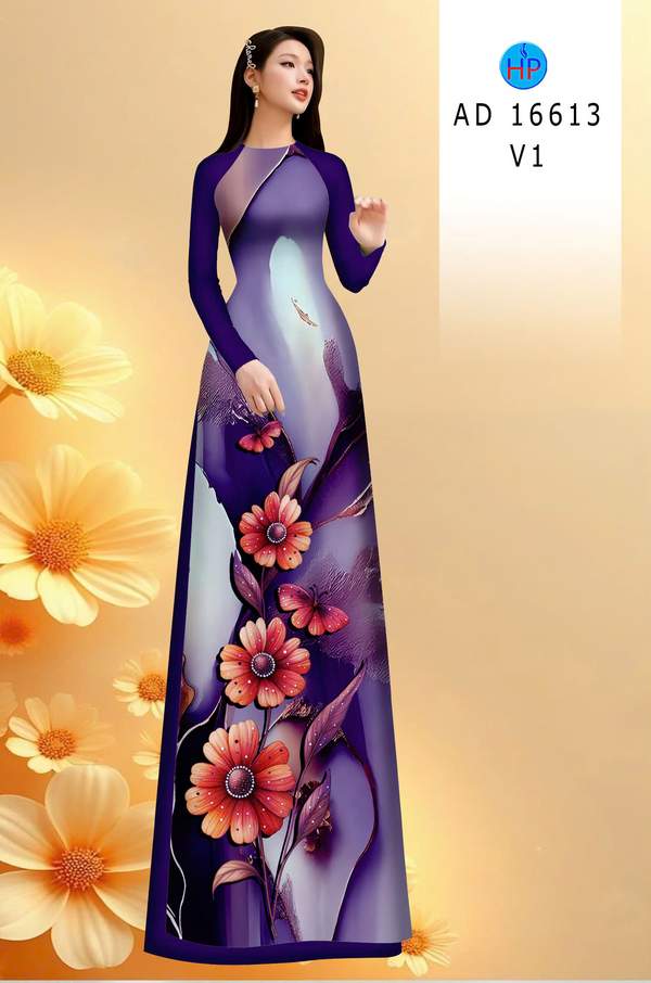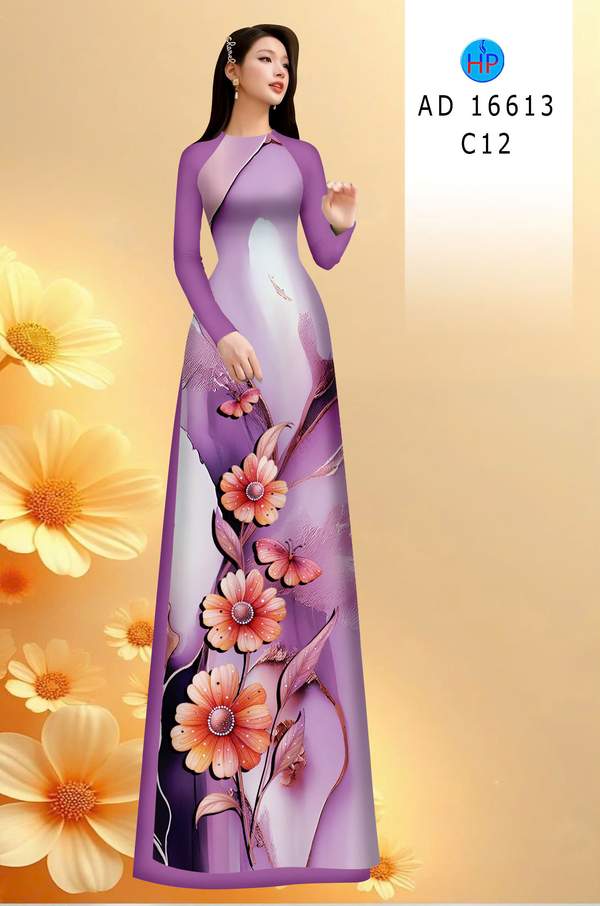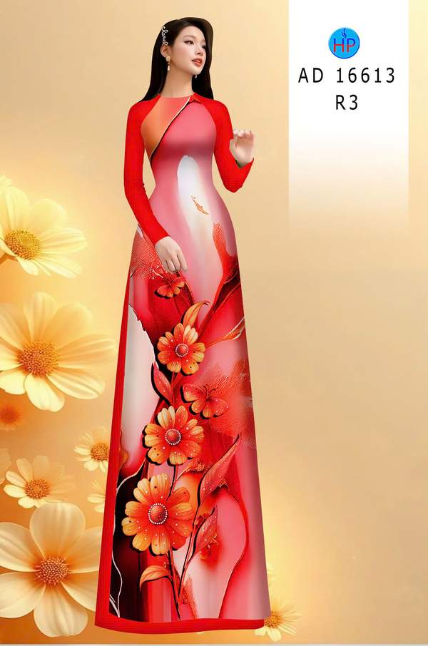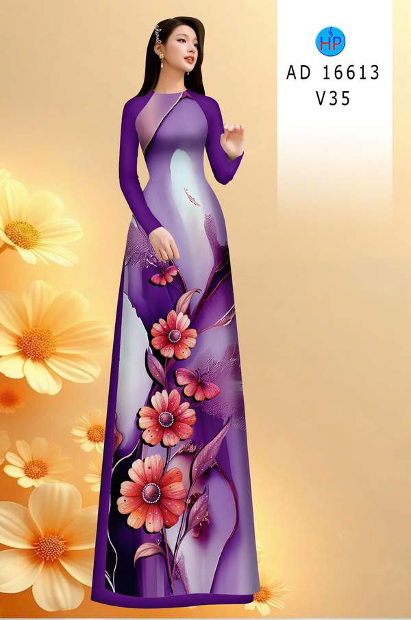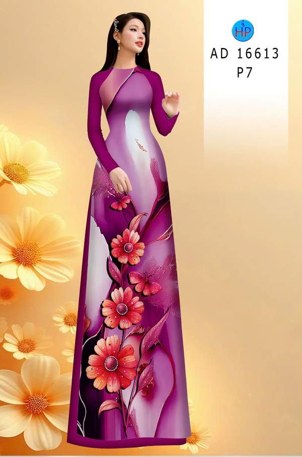 Vải Áo Dài Hoa In 3D vừa thiết kế tuần này AD 16613 truyền thống