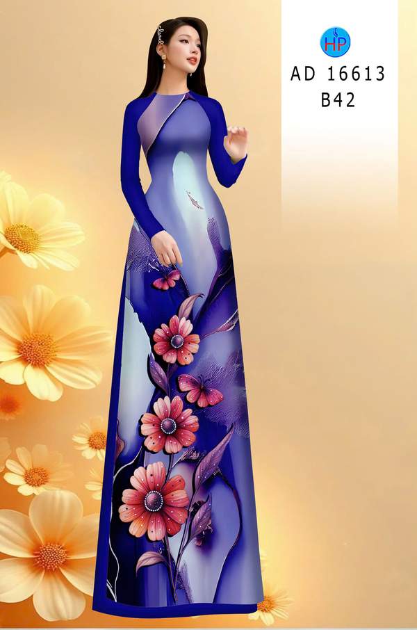 Vải Áo Dài Hoa In 3D vừa thiết kế tháng này AD 16613 cổ truyền