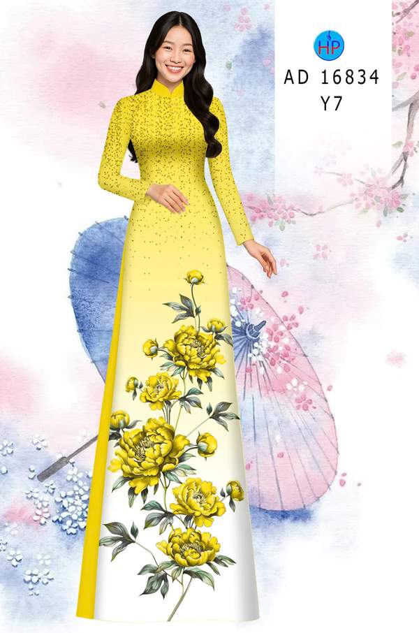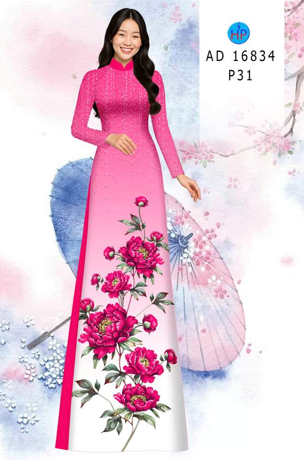 Vải Áo Dài Hoa In 3D ưa chuộng tháng này AD 16834 thiết kế mới