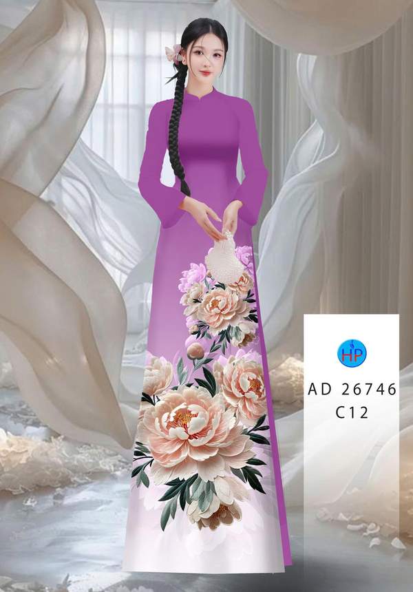 Vải Áo Dài Hoa In 3D ưa thích hiện nay AD 26746 cổ truyền