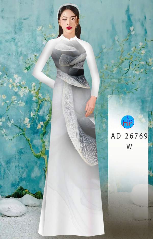 Vải Áo Dài Hoa In 3D thiết kế mới năm nay AD 26769 nhiều kiểu