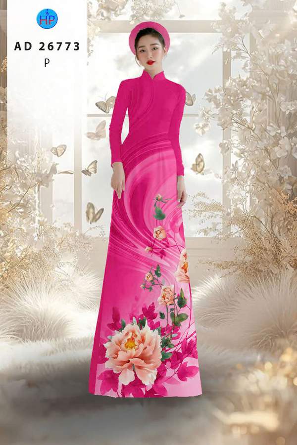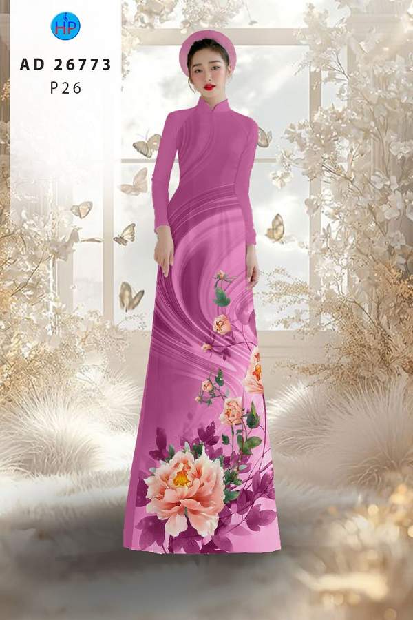 Vải Áo Dài Hoa In 3D AD 26773