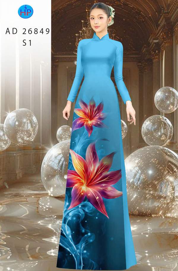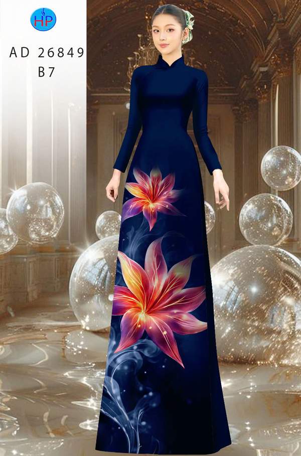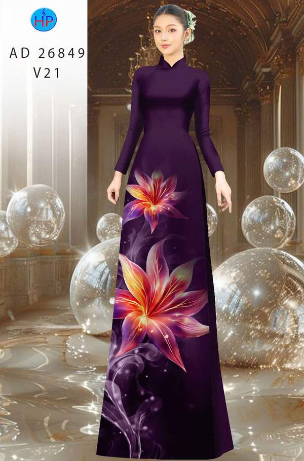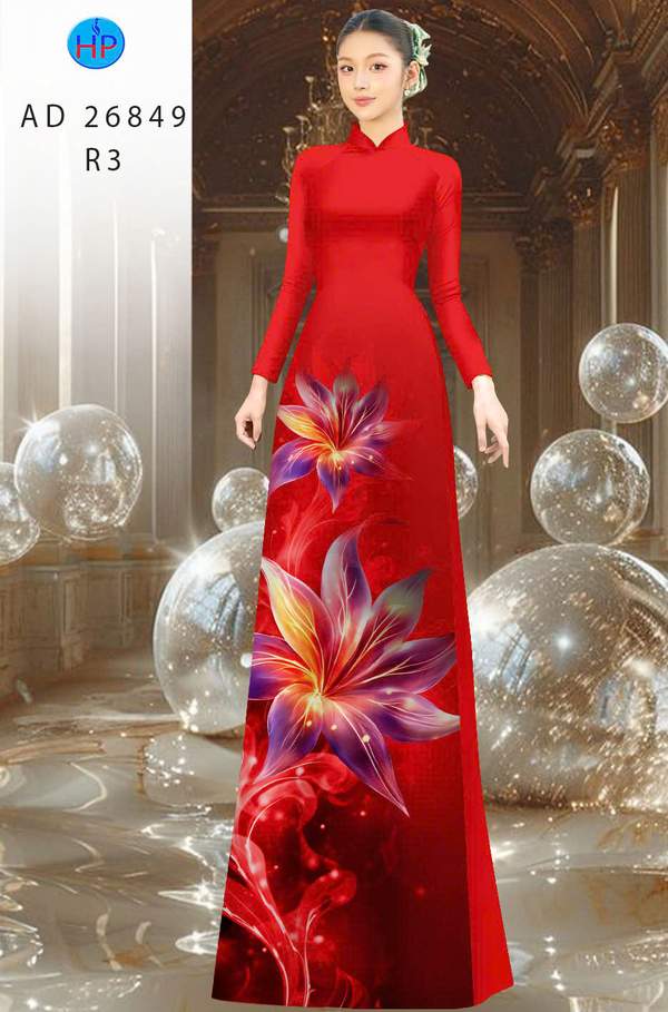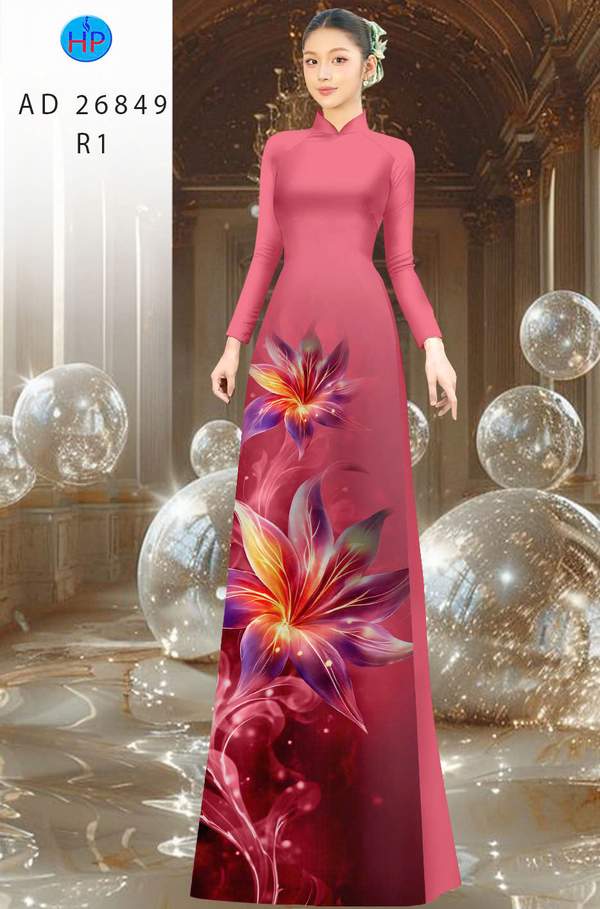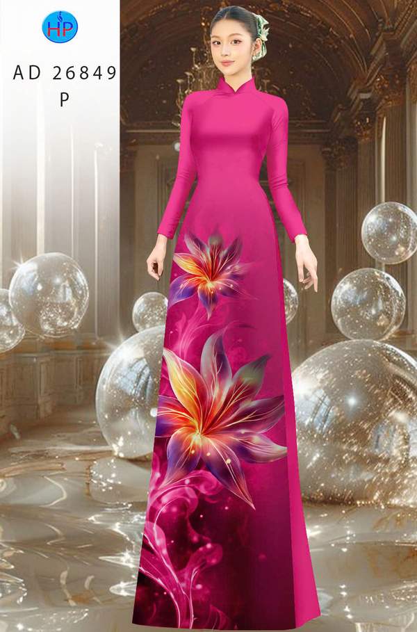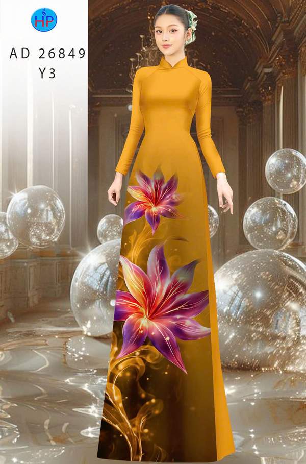 Vải Áo Dài Hoa In 3D mới ra vừa ra AD 26849 cổ truyền Việt Nam