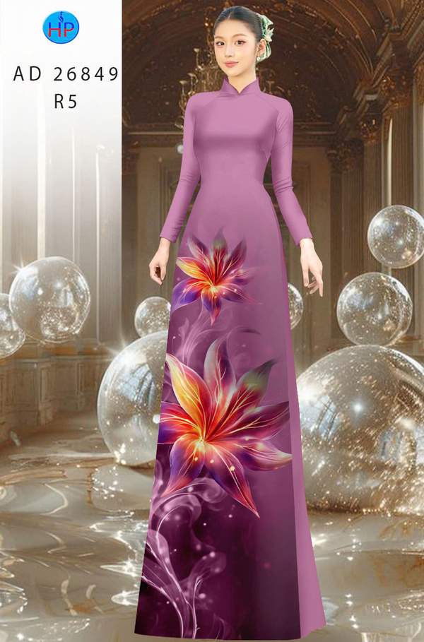 Vải Áo Dài Hoa In 3D thiết kế mới năm nay AD 26849 truyền thống