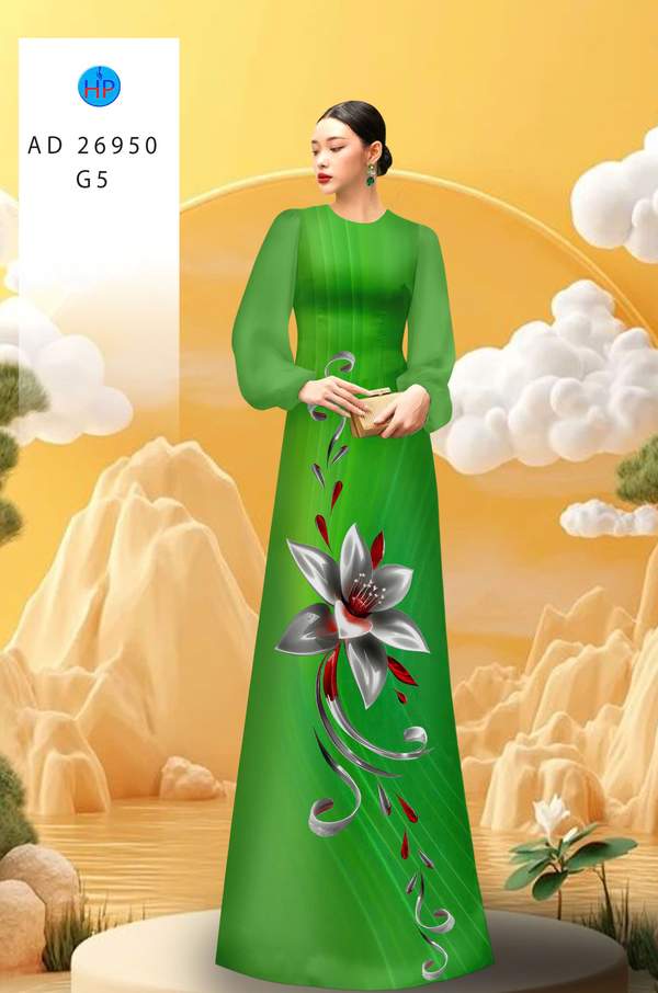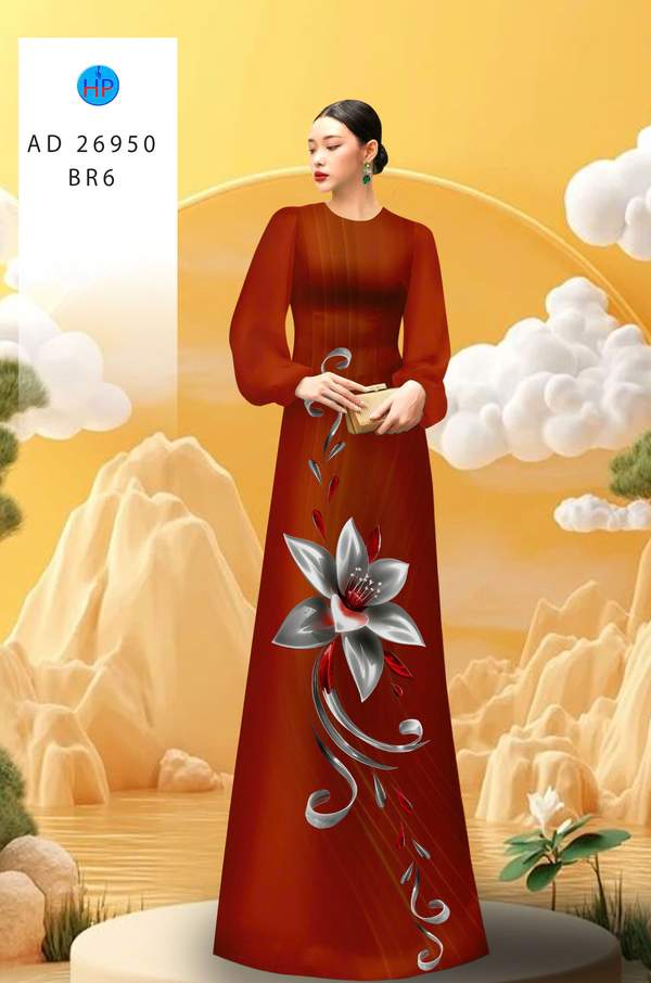 Vải Áo Dài Hoa In 3D nhiều kiểu mới tuần này AD 26950 cổ truyền Việt Nam