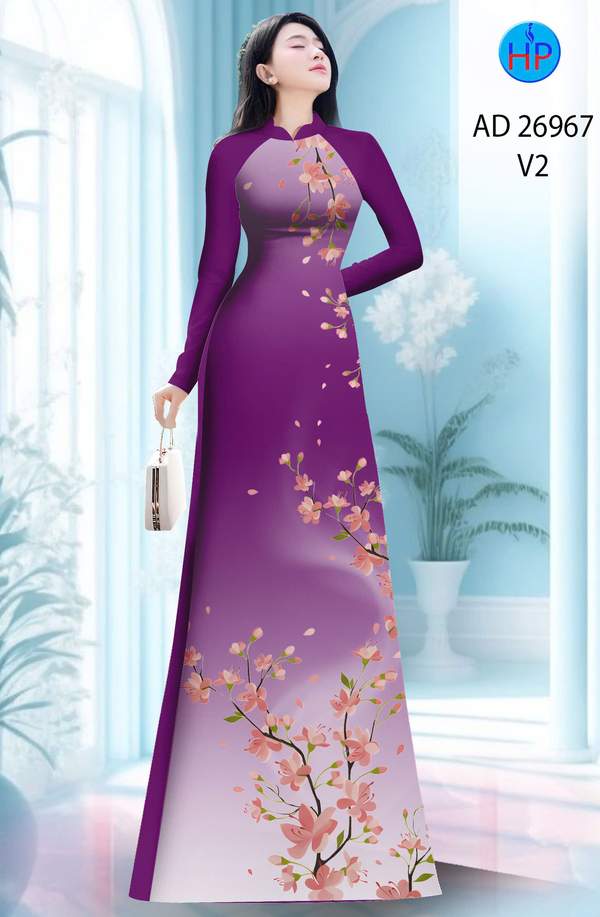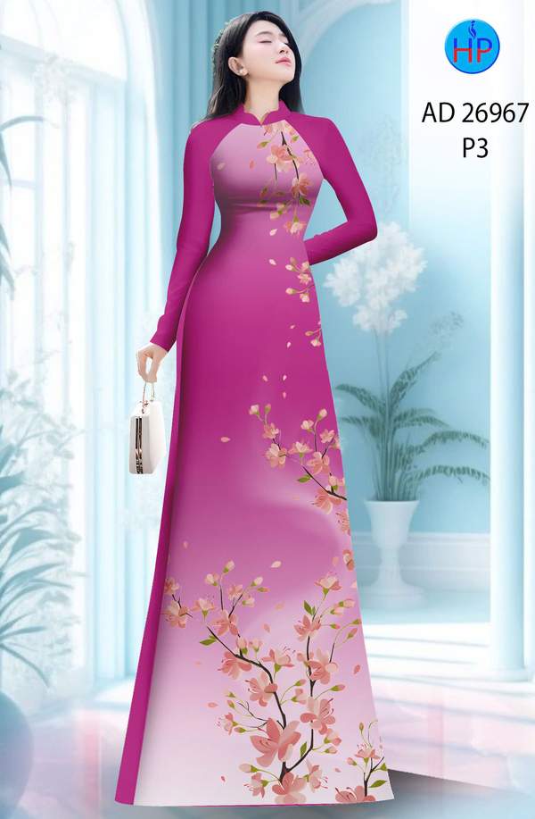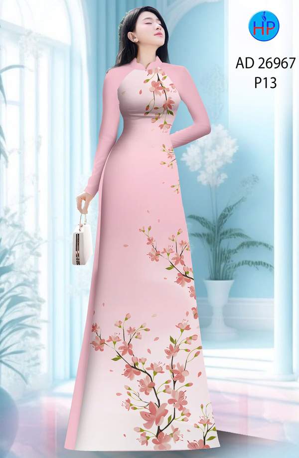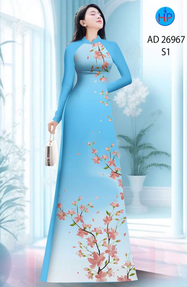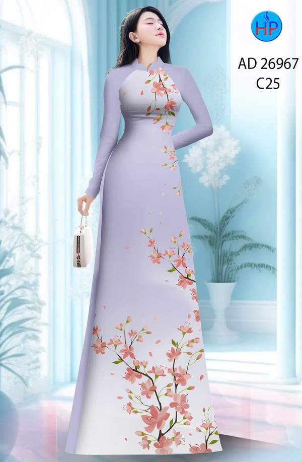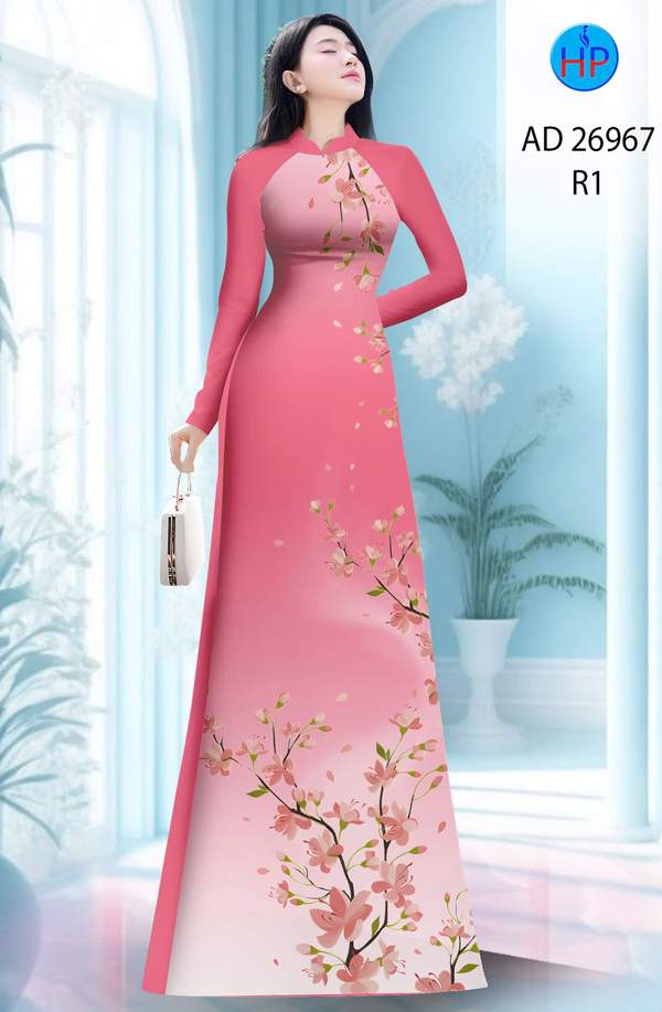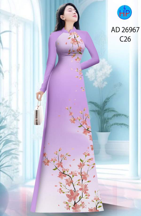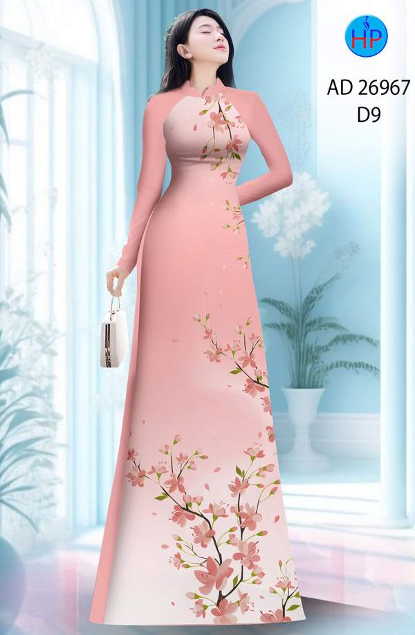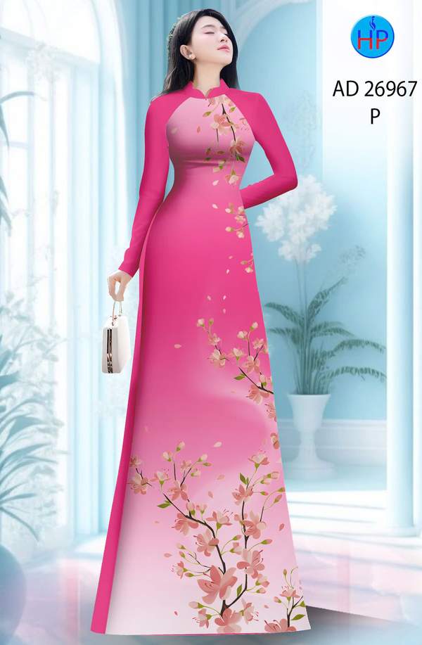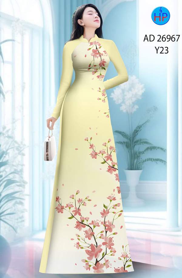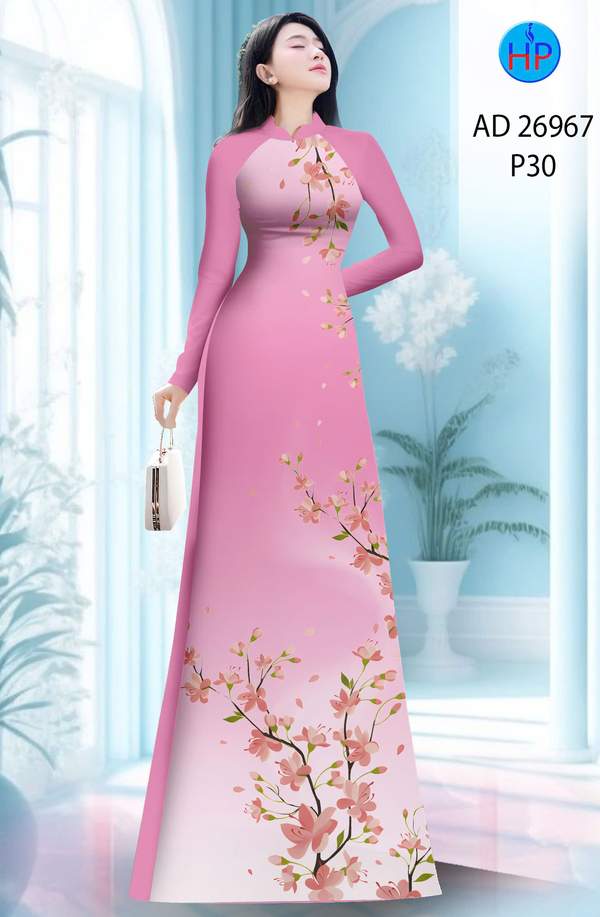 Vải Áo Dài Hoa In 3D nhẹ nhàng tháng này AD 26967 truyền thống