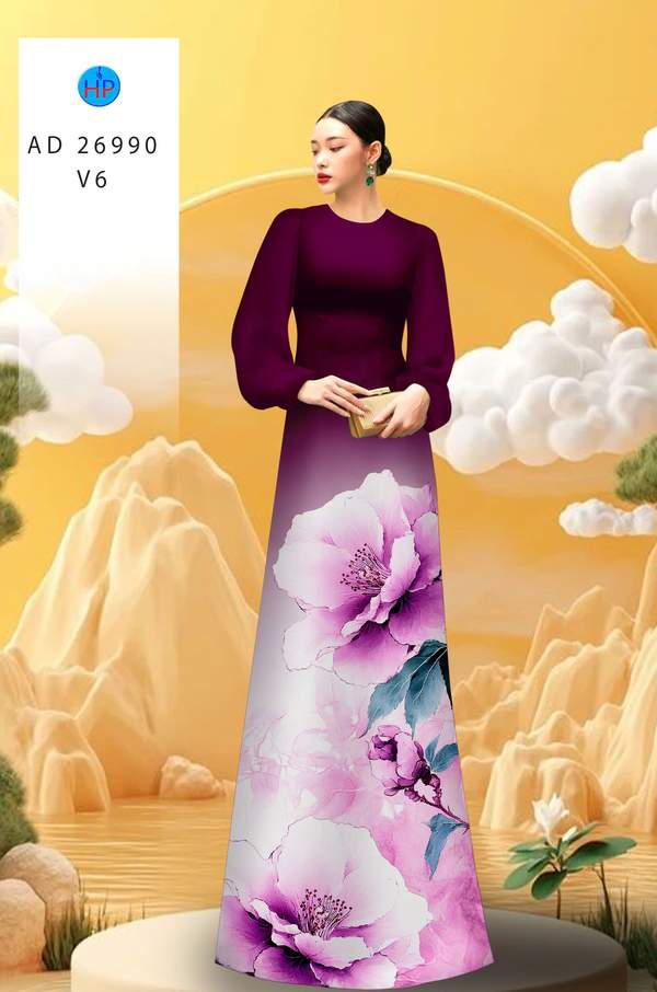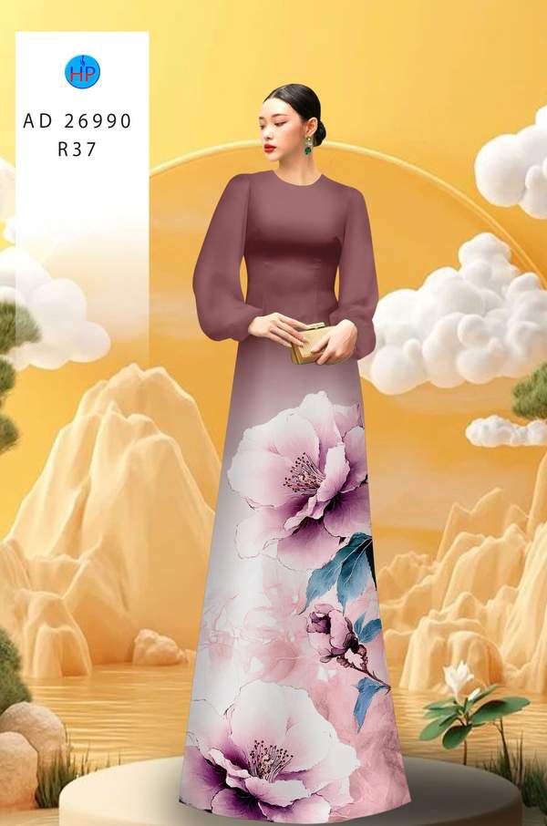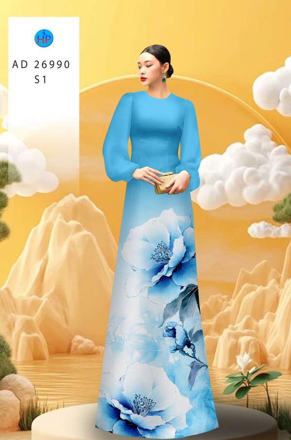 Vải Áo Dài Hoa In 3D thiết kế mới hiện nay AD 26990 tôn dáng ngọc
