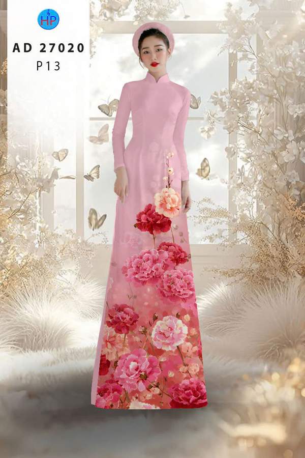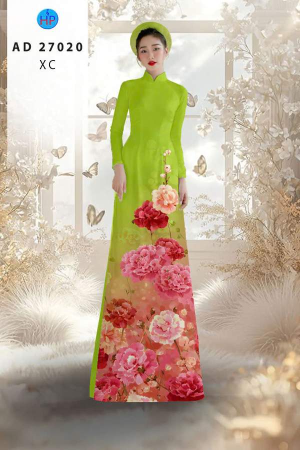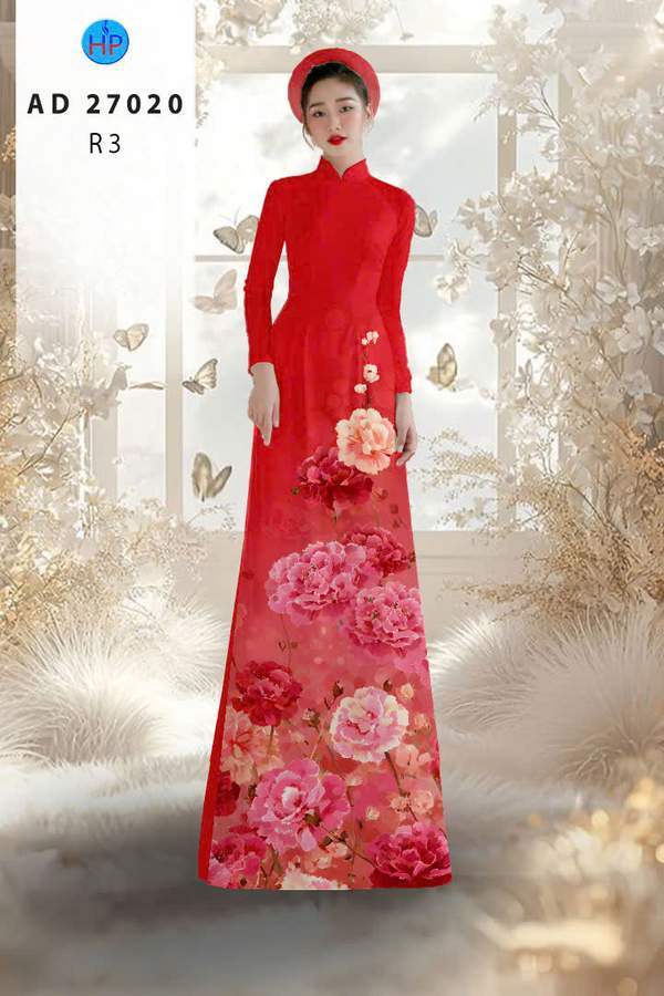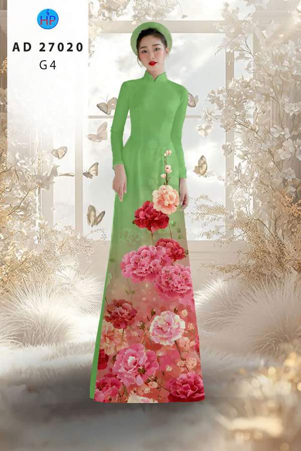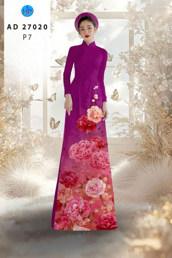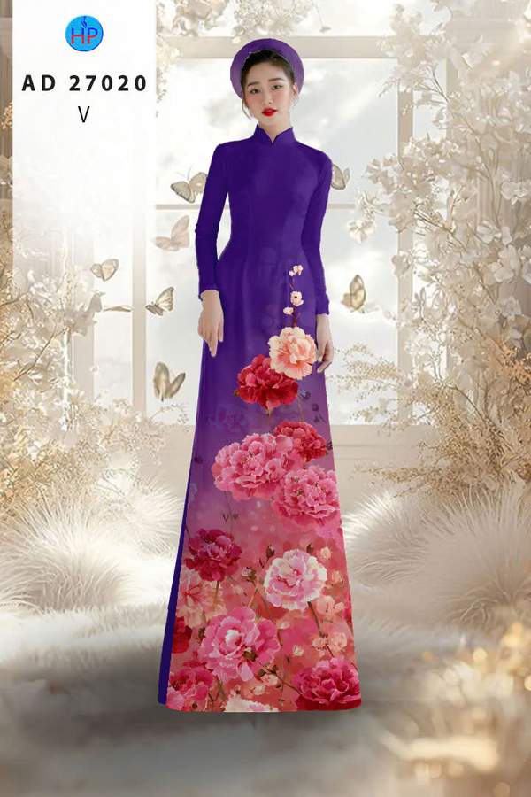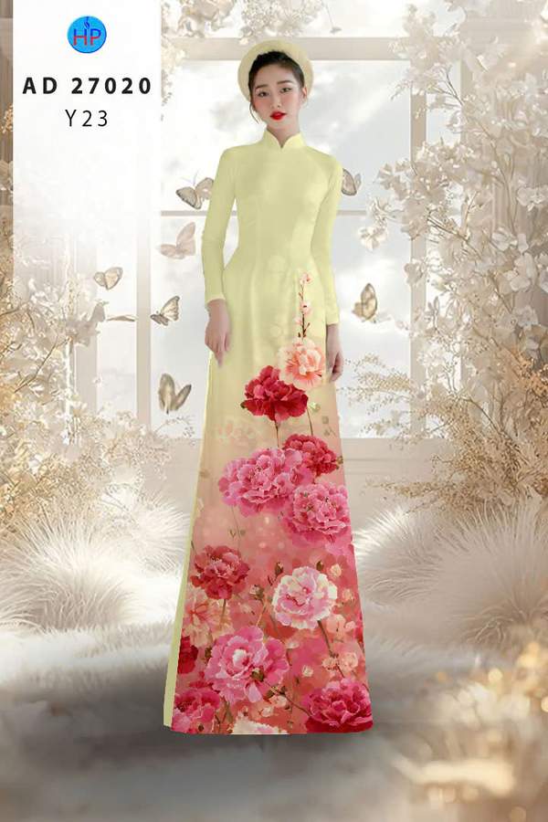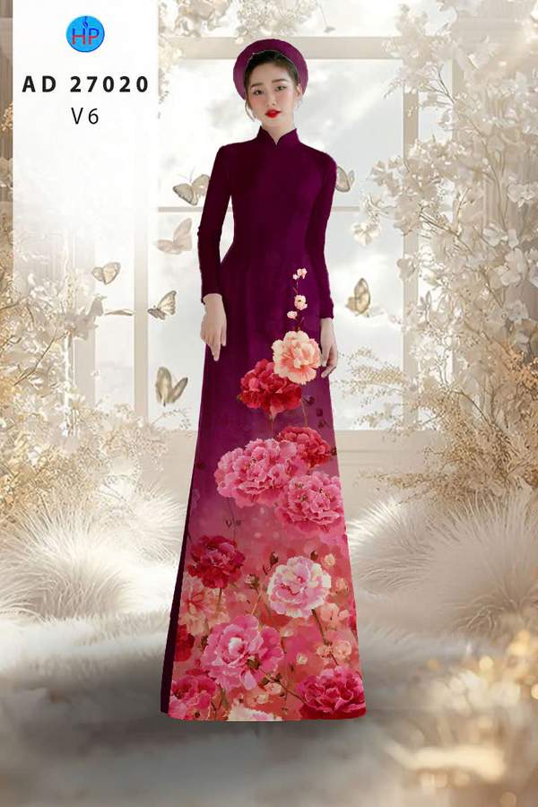 Vải Áo Dài Hoa In 3D mới ra tuần này AD 27020 cổ truyền