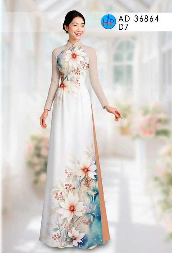 Vải Áo Dài Hoa In 3D mới ra hiện nay AD 36864 tôn dáng ngọc