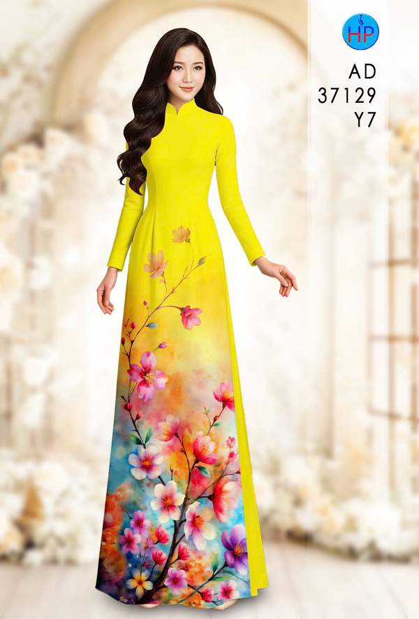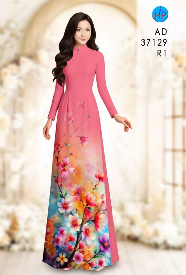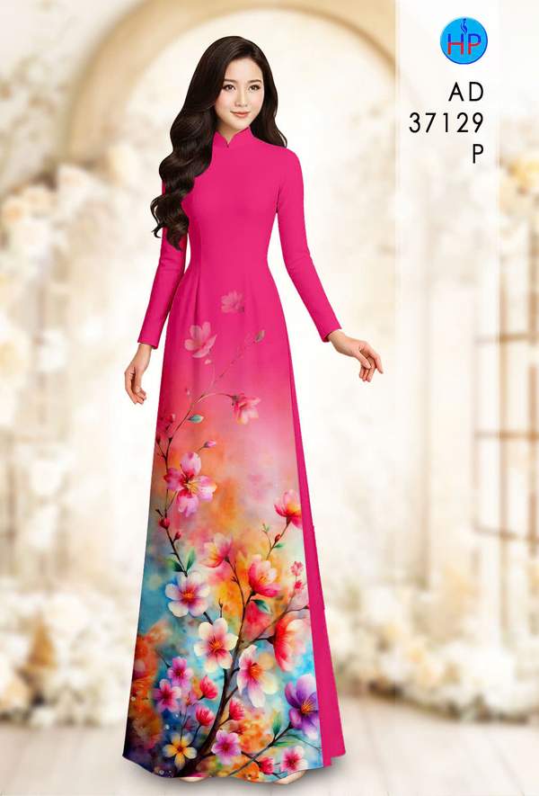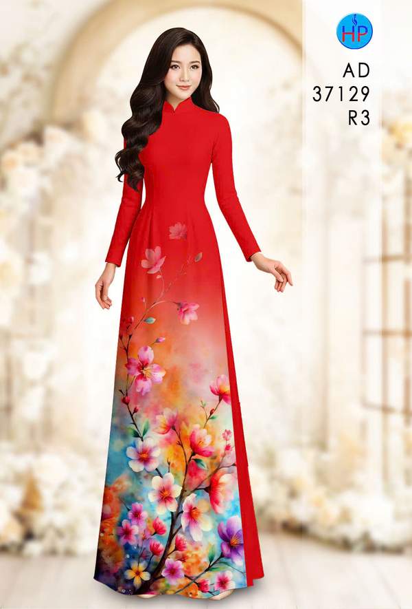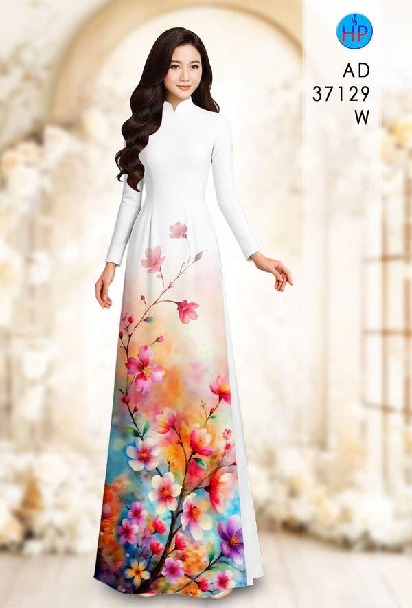 Vải Áo Dài Hoa In 3D nhẹ nhàng tuần này AD 37129 cổ truyền