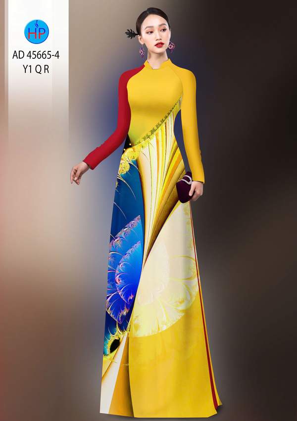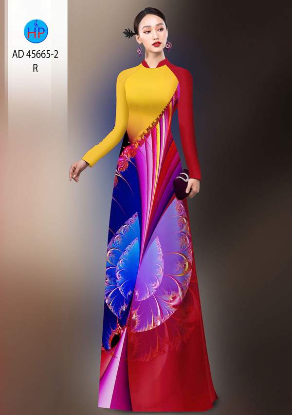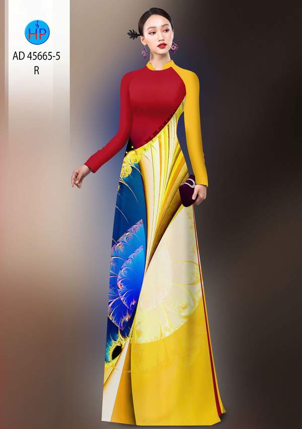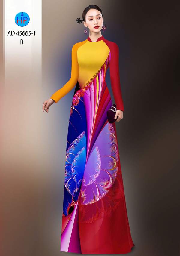 Vải Áo Dài Hoa In 3D mới ra tuần này AD 45665-5 cổ truyền