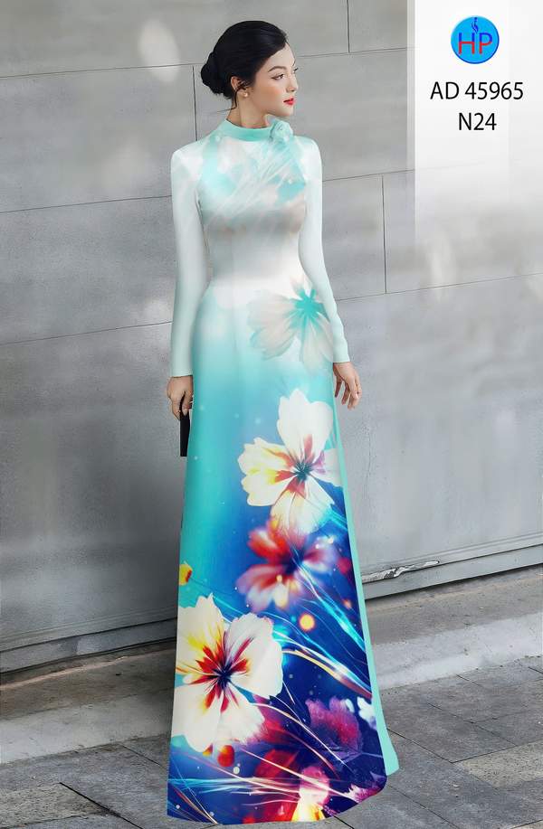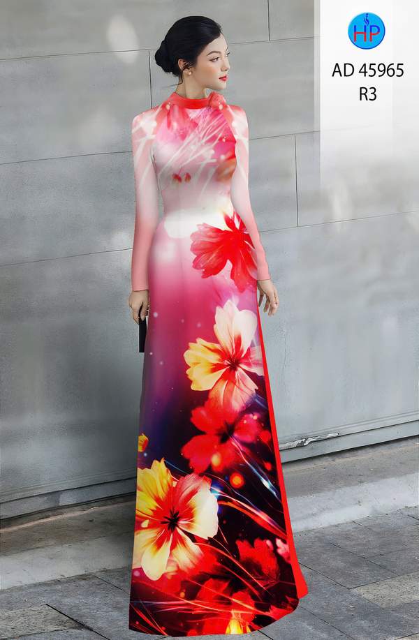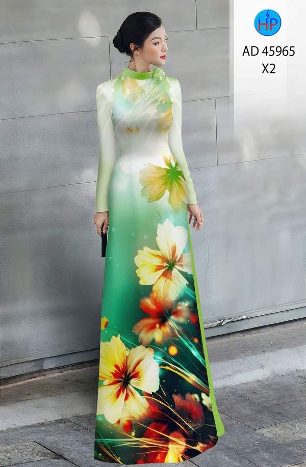 Vải Áo Dài Hoa In 3D vừa thiết kế hiện nay AD 45965 cổ truyền Việt Nam