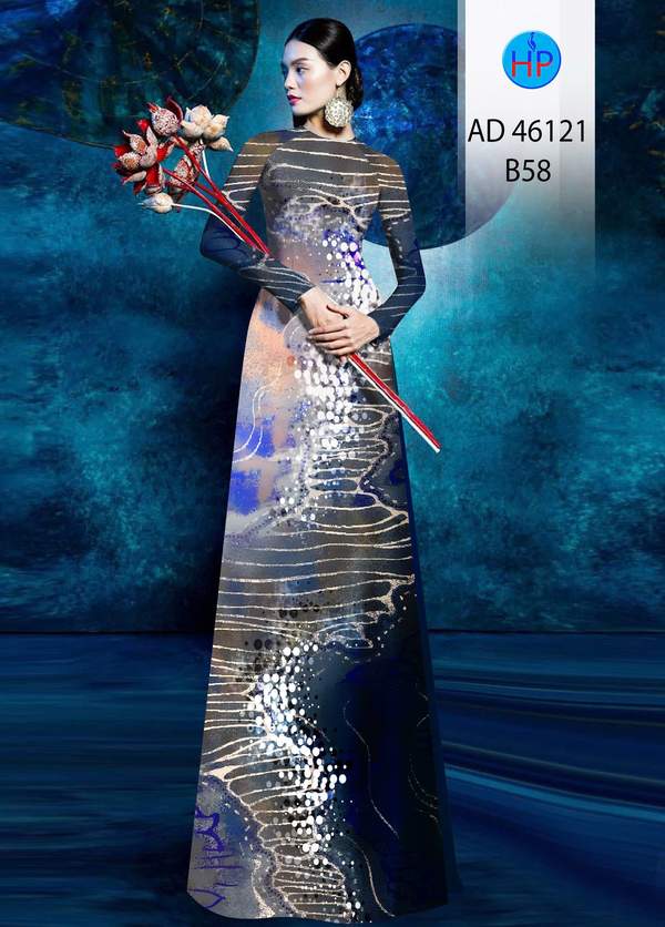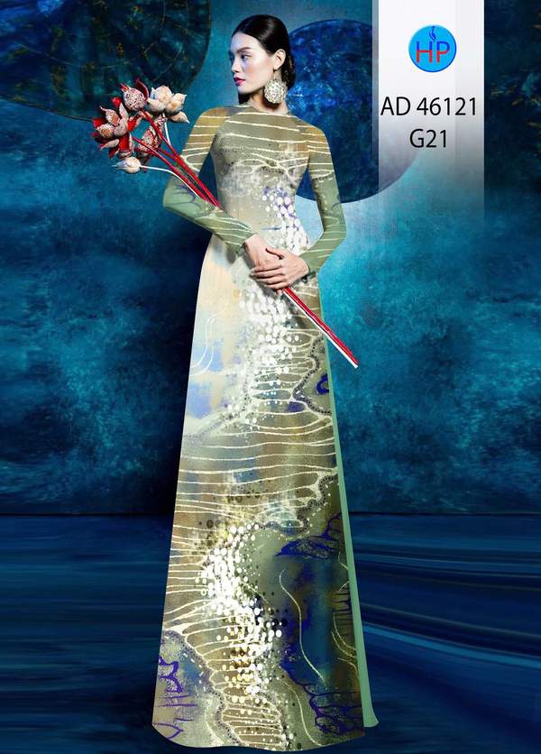 Vải Áo Dài Hoa In 3D ưa chuộng vừa ra AD 46121 tôn dáng ngọc