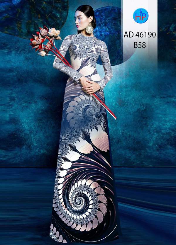 Vải Áo Dài Hoa In 3D thiết kế mới hiện nay AD 46190 nhiều kiểu