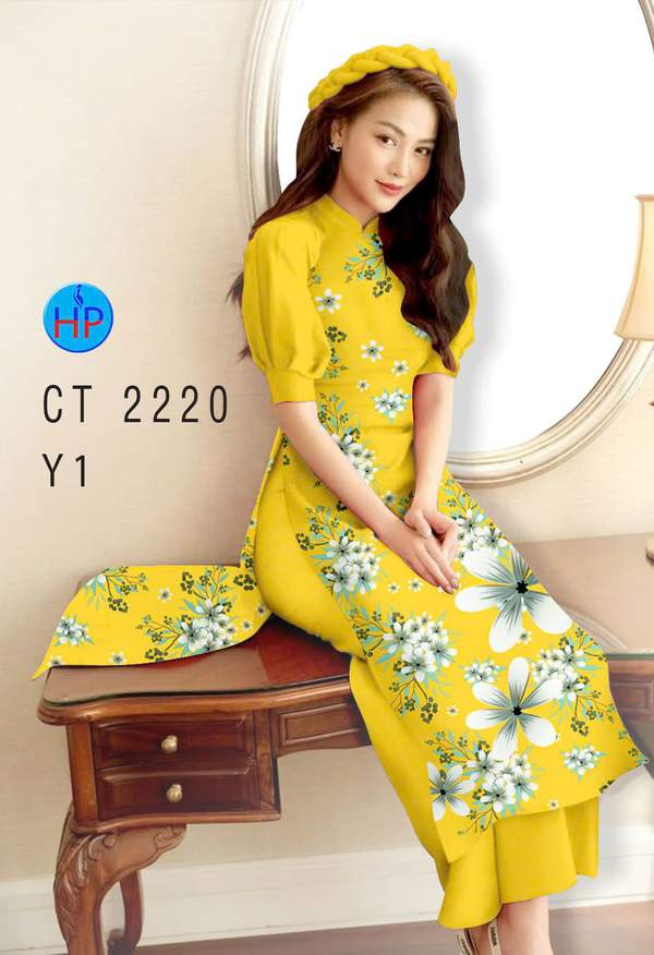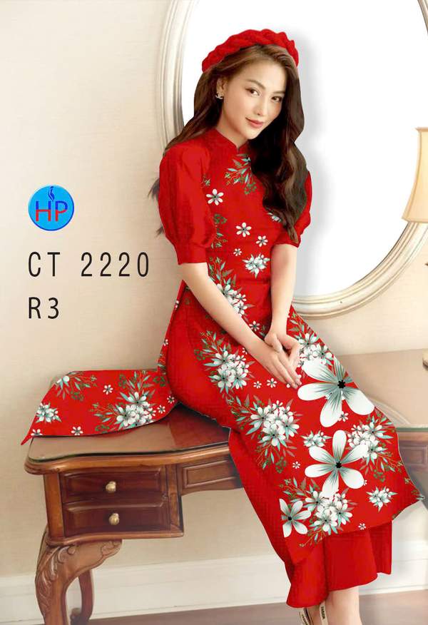 Vải Áo Dài Hoa In 3D vừa thiết kế hiện nay AD CT2220 truyền thống