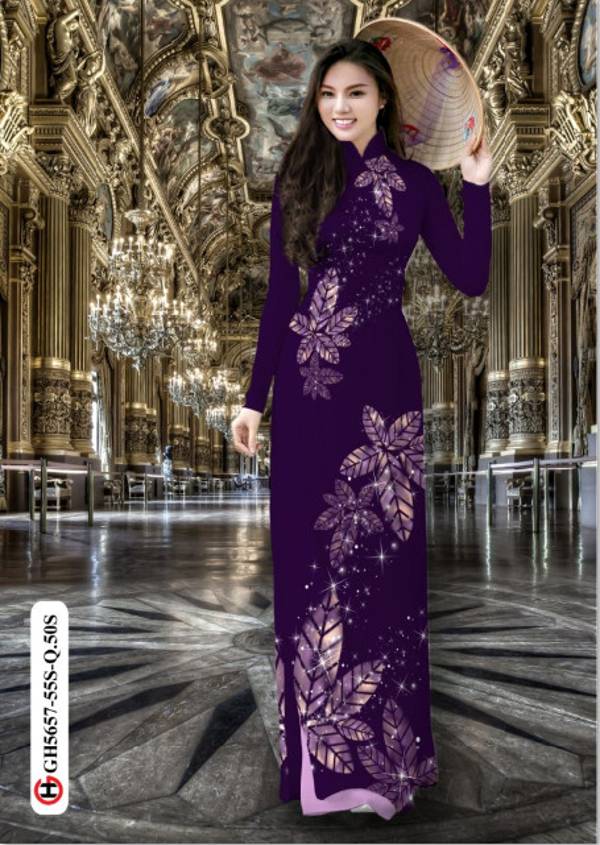 Vải Áo Dài Hoa In 3D mới ra tuần này AD GH5657 cổ truyền Việt Nam