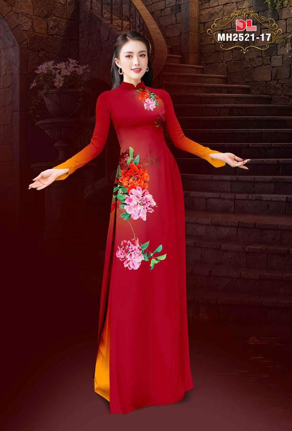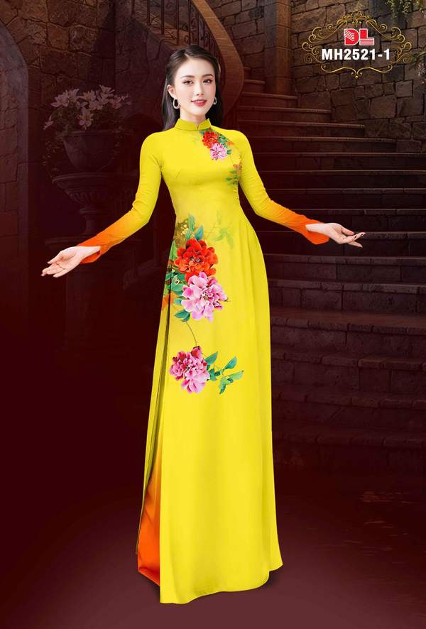 Vải Áo Dài Hoa In 3D thời trang tháng này AD MH2521 cổ truyền