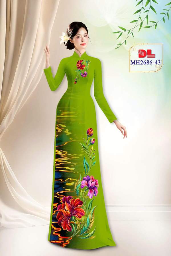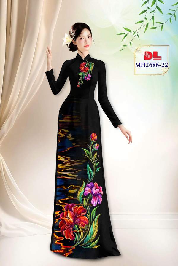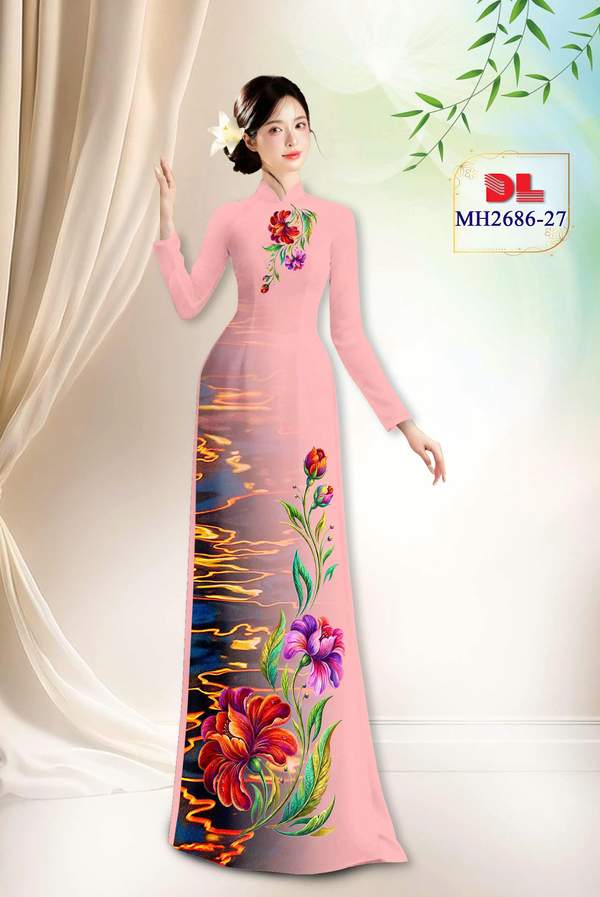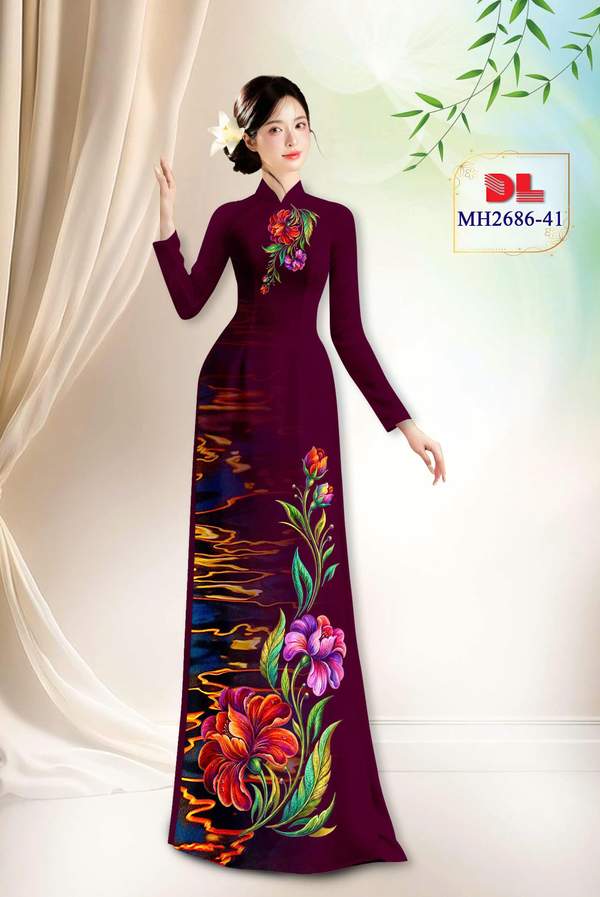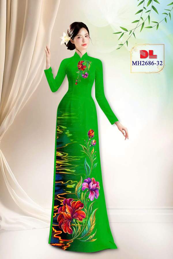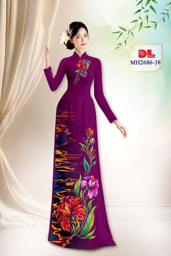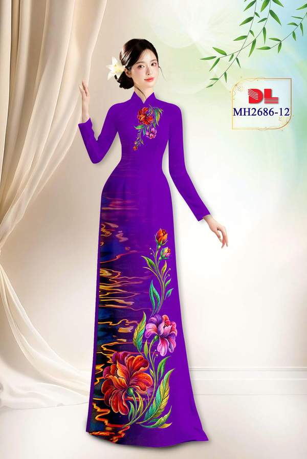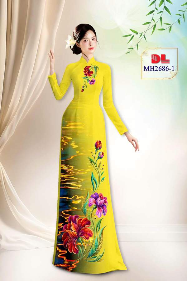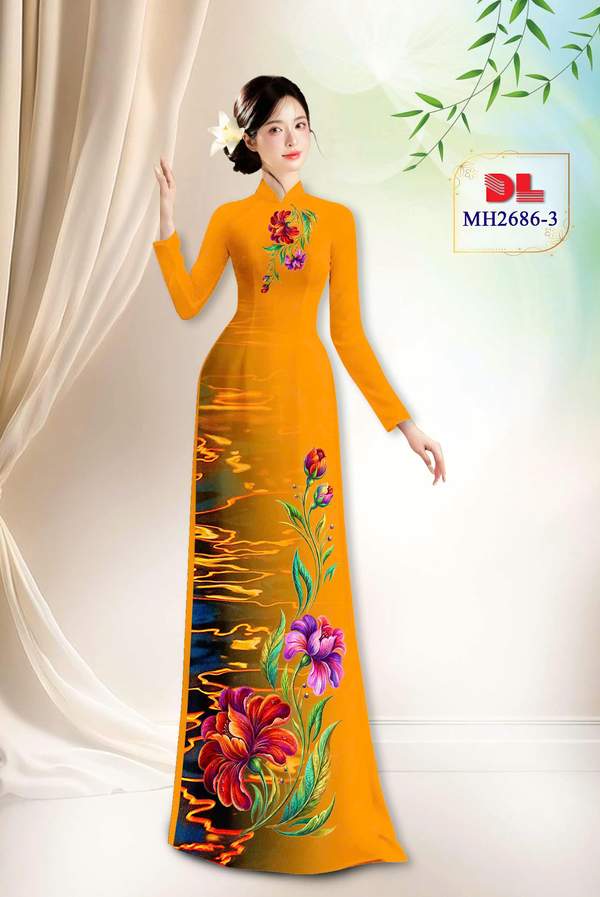 Vải Áo Dài Hoa In 3D xem nhiều nhất năm nay AD MH2686 cổ truyền Việt Nam