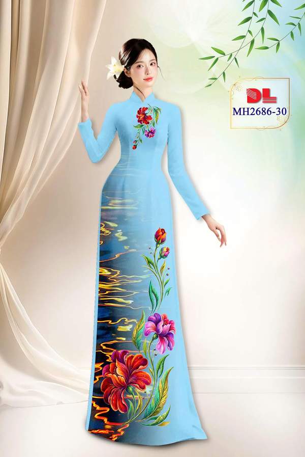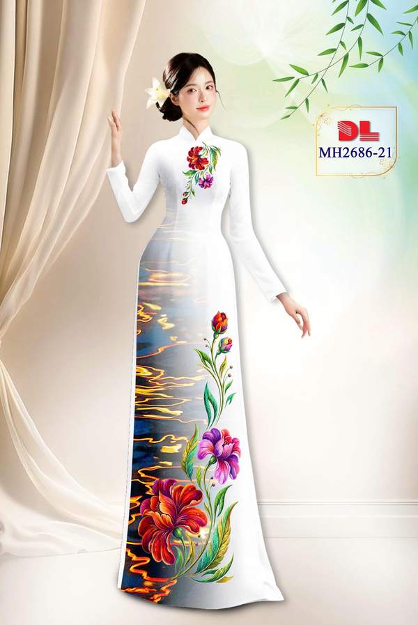 Vải Áo Dài Hoa In 3D đa dạng mẫu mã năm nay AD MH2686 vừa thiết kế