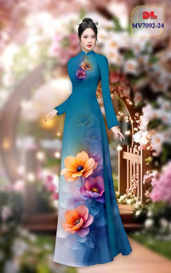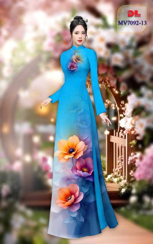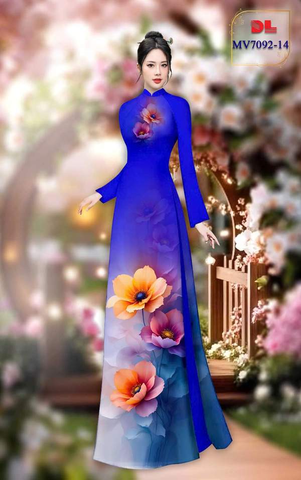 Vải Áo Dài Hoa In 3D vừa thiết kế tháng này AD MV7092 cổ truyền